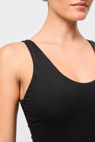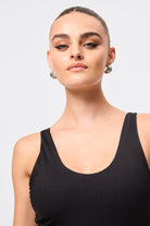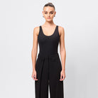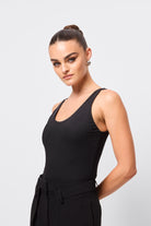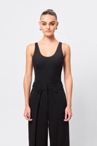 The Bliss Bodysuit in Black is a sleek, form-fitting fashion essential designed for effortless styling. Crafted from soft premium Lycra with a subtle sheen, it features a bra-friendly low scoop neckline at the front and back, a sleeveless cut, and a high-cut leg and g-string for a streamlined silhouette. Designed for a seamless fit, it layers effortlessly under trousers, skirts, or denim for a smooth silhouette. Both versatile and timeless, this piece transitions with ease from day to night—perfect for modern, on-trend dressing.