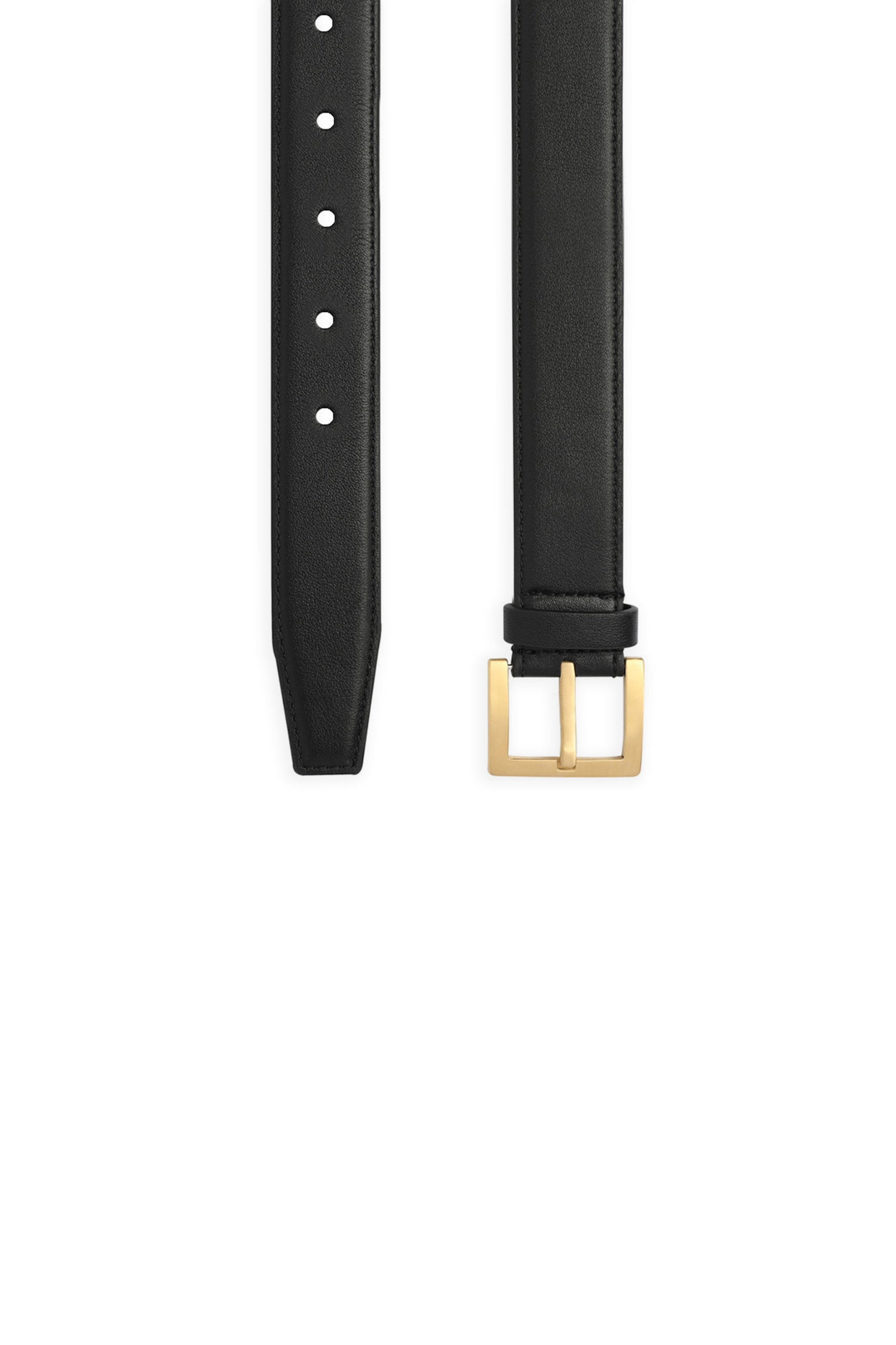 Refined and timeless, The Classic Belt in black with gold hardware is a modern staple. Crafted from 100% genuine cowhide leather and finished with a brushed gold square buckle, it adds quiet polish to any look. Clean lines and a structured silhouette make it ideal for cinching blazers or elevating denim. Wear it layered over structured pieces or looped through your go-to jeans — a timeless piece for effortless styling.