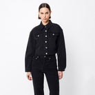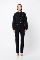 The Bexley Jacket in black wash brings a fresh, modern update to a timeless denim jacket silhouette. This cropped jacket offers effortless versatility, featuring faux front pockets, contrast metal stud fastening and a structured collar. Pair it with the coordinating Bexley Mini Skirt for a chic, cohesive look or add it to your denim collection for a fresh, updated style.