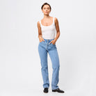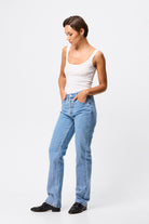 The Bexley Jean features a beautiful vintage blue wash. Highlighted by its high-waisted silhouette, button closures, and straight-leg fit, the denim jean will take you through the seasons in style. Pair with your favourite basics or wear as a complete matching set with the Bexley Shirt.