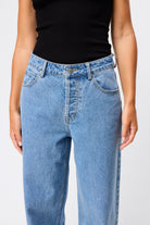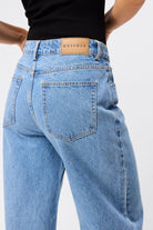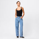 The Frequency Jean is our latest jean in a vintage blue wash. With a high-waisted silhouette, classic five-pocket design, and wide-leg fit, these denim jeans will take you through the seasons in style. Pair with your favourite basics for a casual daytime look, or pair it with our Oblivion off-shoulder top for a fashion-forward outfit.