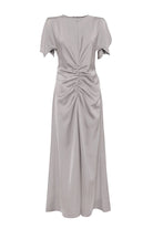 The Forgive & Forget Maxi Dress in pewter grey delivers elegance with a contemporary twist. Featuring a round neckline, split flutter sleeves, and fixed ruching detail this dress has a body-skimming silhouette for a flattering fit. Ideal for events, this dress can be styled for a range of occasions, both day and night.