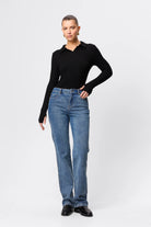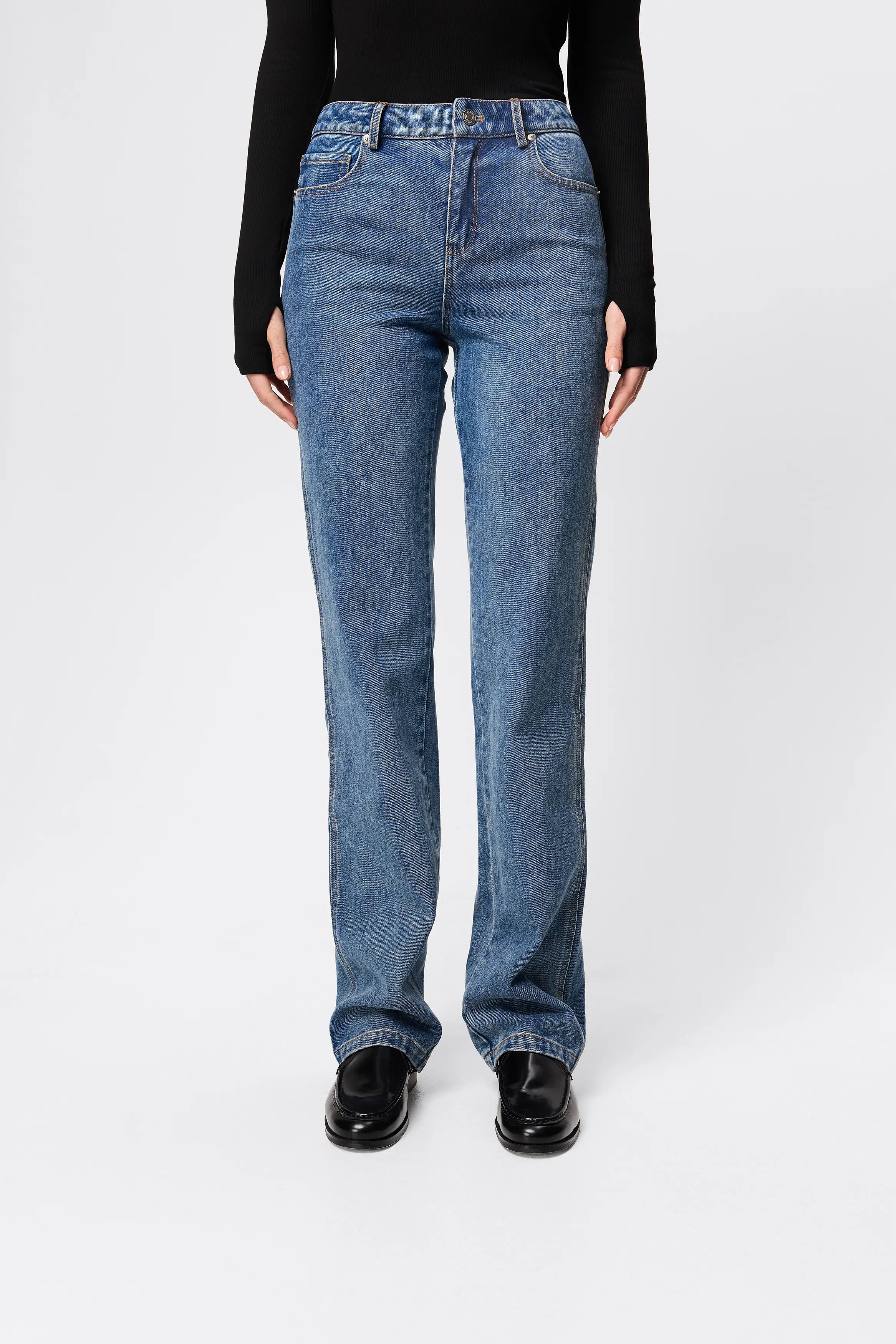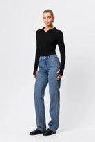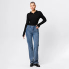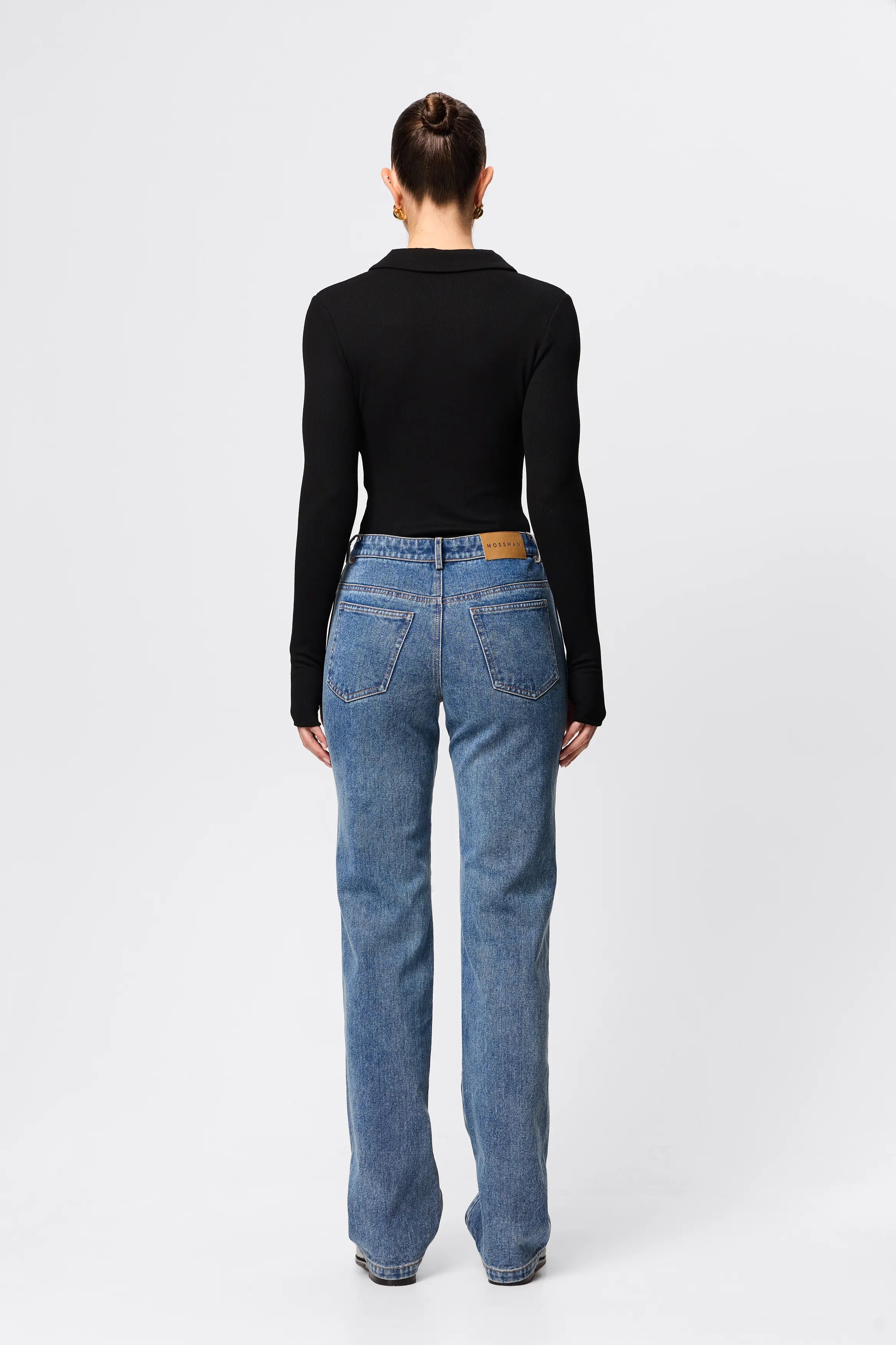 A timeless wardrobe staple, the Aspen Jean is crafted from premium classic blue denim and designed with a high-rise waist and straight-leg fit. Offering effortless versatility, it pairs perfectly with elevated basics or a matching denim shirt for a modern double-denim look.