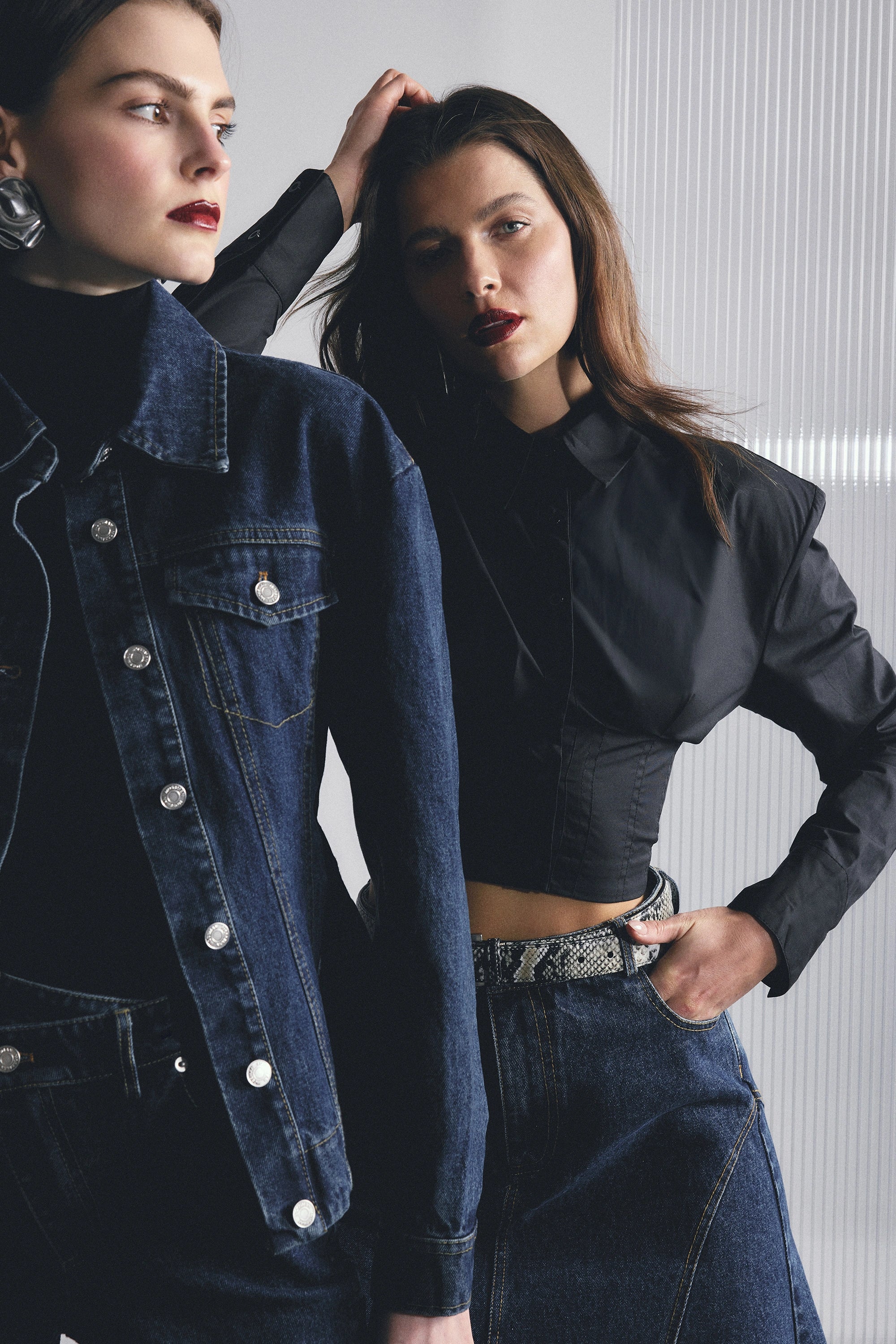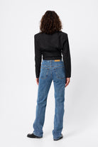 - Cropped length with topstitch detailing