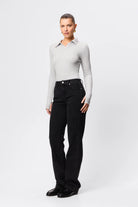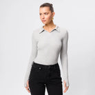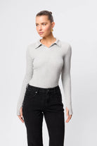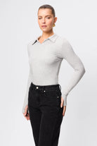 A modern essential with timeless appeal, the Florence Polo Top in Greymarle is crafted from a double-layered ribbed jersey fabrication for a soft, sculpting fit. Featuring a collared neckline and long sleeves with thumb openings, this piece combines classic polo detailing with a contemporary, form-fitting silhouette. Designed for versatility, it transitions effortlessly from desk to dinner when paired with tailoring or denim.