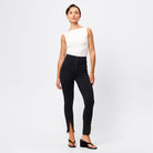 A modern take on a classic, the Defensive Pant in Black is a sleek wardrobe essential. Designed with a form-fitting silhouette, it features zip detailing at the centre front and ankles for a subtle edge. Style with a tank and sneakers on the weekend, with a blazer and shirt for work, or dress it up with heels and a statement top for evening plans. Effortlessly versatile from desk to dinner and everywhere in between.