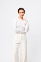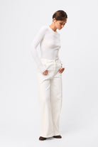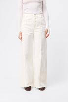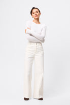 The Transpire Jean in white denim is designed to be worn throughout all seasons. This jean features a flattering wide-leg silhouette, front seam detailing, front and back pockets, and a high-rise waist. Pair it with your favourite basics or wear it as a coordinated set with the Bexley Shirt.
