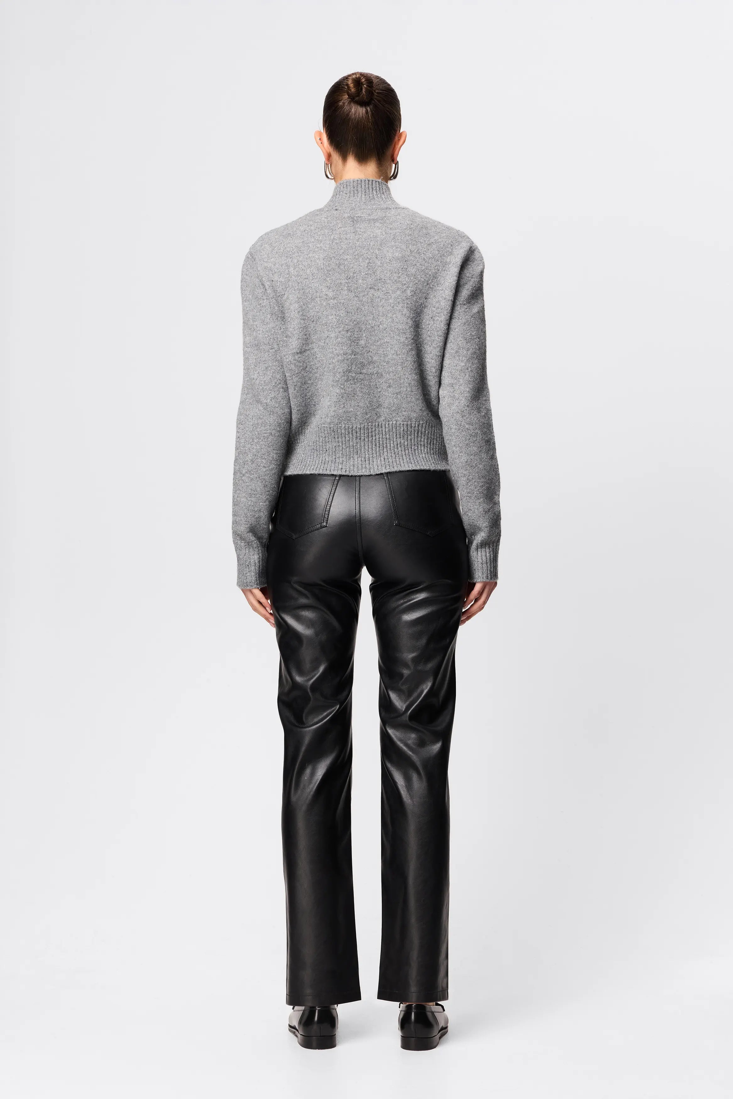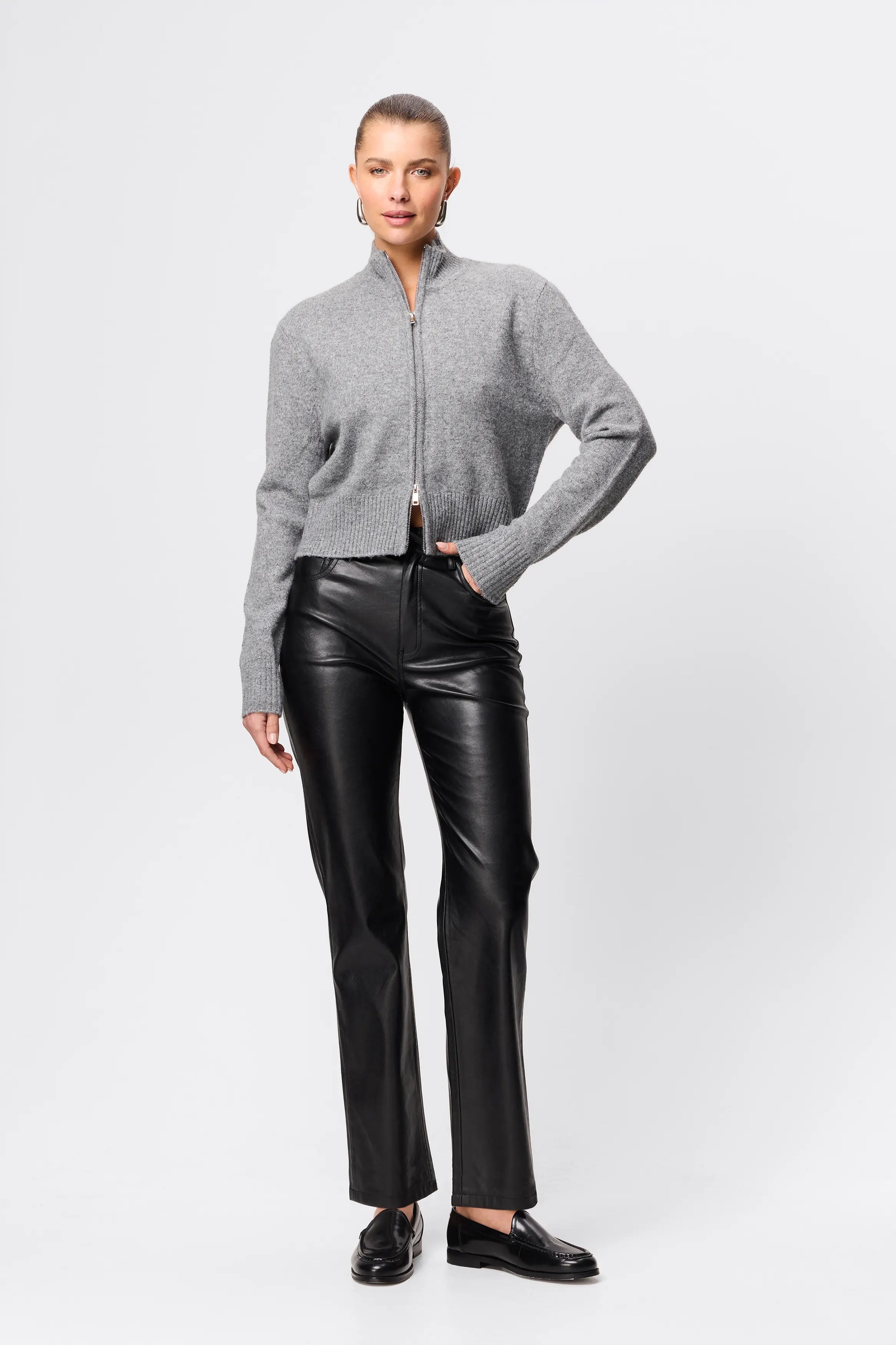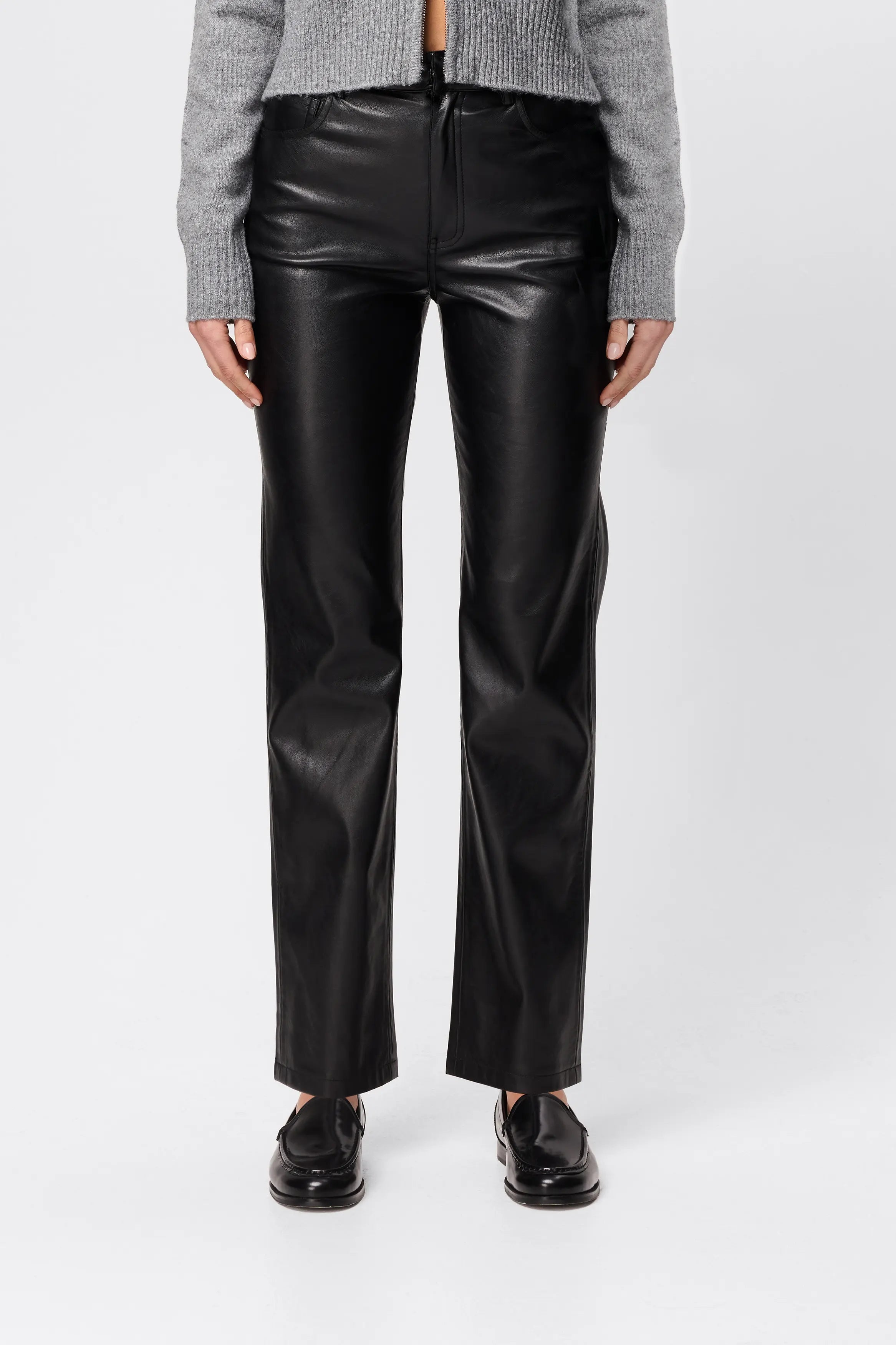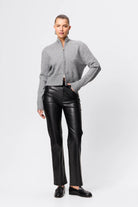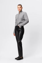 This bestseller is back for another season! The Fairfax Leather Pant in Black is a sleek wardrobe essential designed to elevate everyday styling with a refined, modern edge. Crafted from Mossman’s signature buttery smooth faux leather, this high-rise silhouette is cut to sit neatly at the waist before falling into a straight leg profile that elongates and flatters. The streamlined design is finished with classic five-pocket styling and subtle seam detailing, offering a timeless foundation that pairs effortlessly with everything from relaxed knitwear to sharp tailoring. Polished yet versatile, the Fairfax Leather Pant transitions seamlessly from day to evening, delivering understated confidence with every wear.