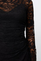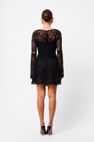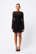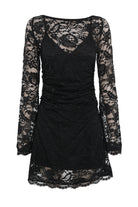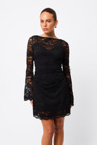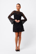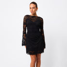 Elevate every occasion in the Laced In Love Mini Dress in Black — the perfect balance of elegance, edge, and allure. Crafted from premium lace, it features a refined boat neckline and soft, flared long sleeves for a romantic yet modern feel. Waist gathers flatter the silhouette, while a scalloped hemline lends delicate detail. Finished with a removable slip lining for comfort and versatility, it transitions effortlessly from evening events to after-dark moments.