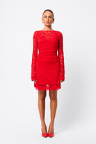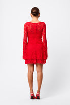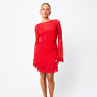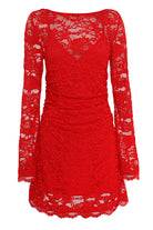 Elevate every occasion in the Laced In Love Mini Dress in Red — the perfect balance of elegance, edge, and allure. Crafted from premium lace, it features a refined boat neckline and soft, flared long sleeves for a romantic yet modern feel. Waist gathers flatter the silhouette, while a scalloped hemline lends delicate detail. Finished with a removable slip lining for comfort and versatility, it transitions effortlessly from evening events to after-dark moments.