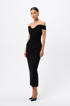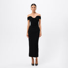Turn heads in the Modernist Midi Dress in Black — a sculptural silhouette that blends refined simplicity with modern edge. Crafted from a premium matte crepe fabrication, it features a waved off-the-shoulder neckline with boning for structure and support. The sleek column fit is fully lined for a flawless finish, while an invisible centre-back zip and back split ensure ease of movement. Sophisticated and striking, it’s an unforgettable choice for any formal event.