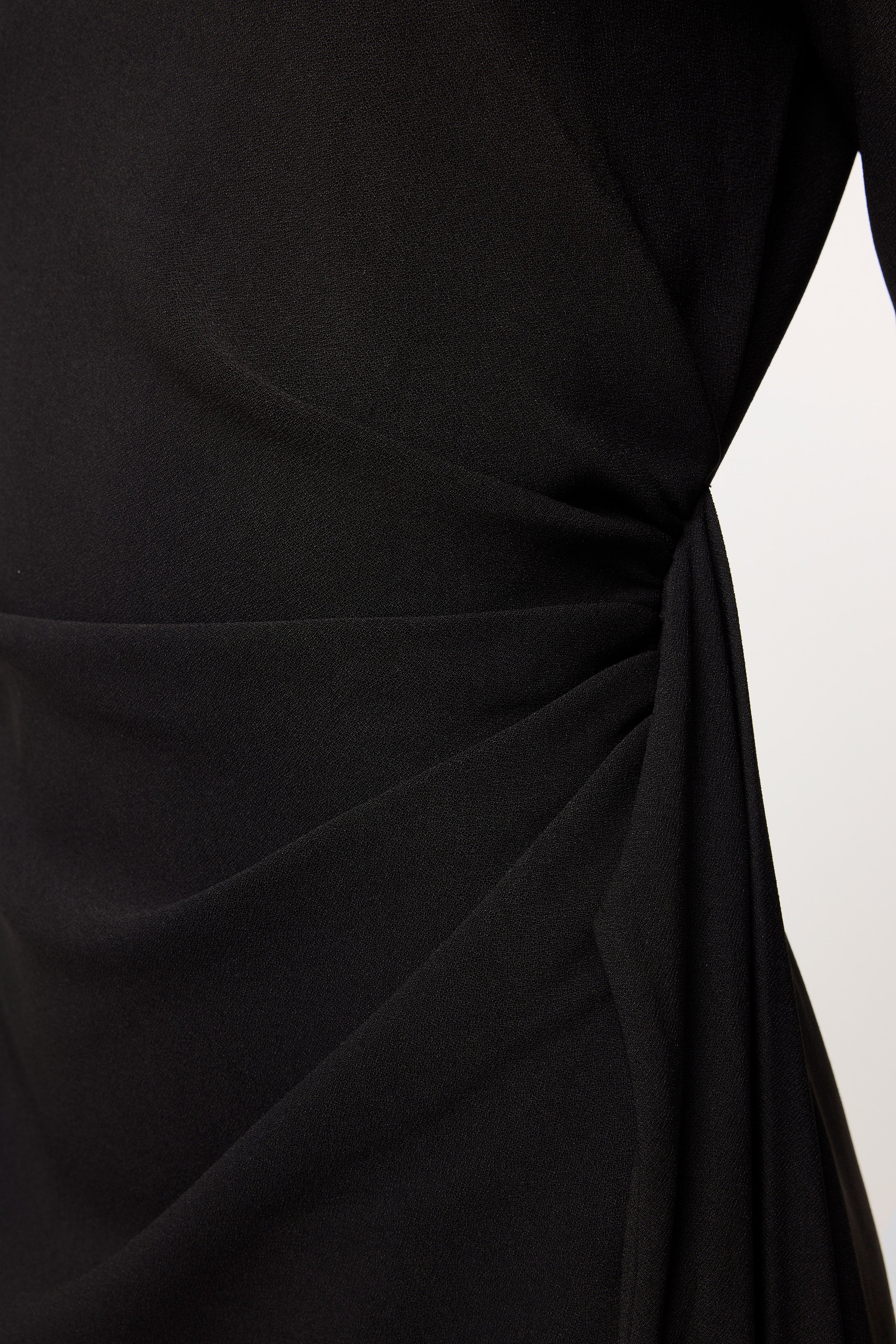- Asymmetric side drape overlay detail