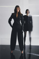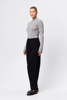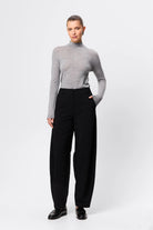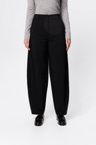 The Sonder Pant in Black is a modern tailoring essential, cut from a heavyweight twill suiting fabrication that offers structure while maintaining a fluid drape through the leg. Designed to sit on the waist with a barrel-leg silhouette, the style balances sharp tailoring with effortless sophistication, making it an elevated foundation for both work and off-duty dressing. Pair with the matching Sonder Blazer for a refined, coordinated look that embodies understated confidence.