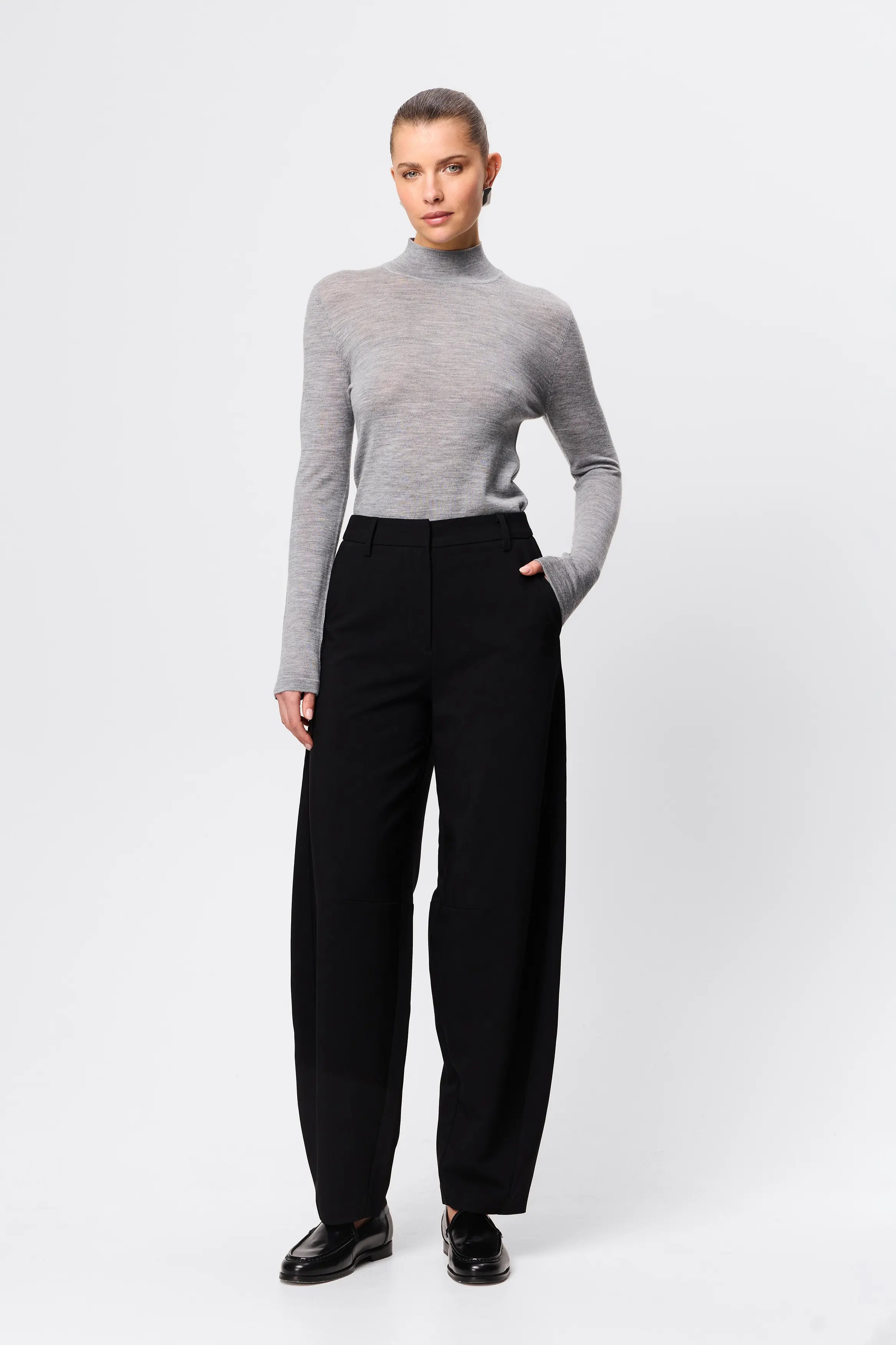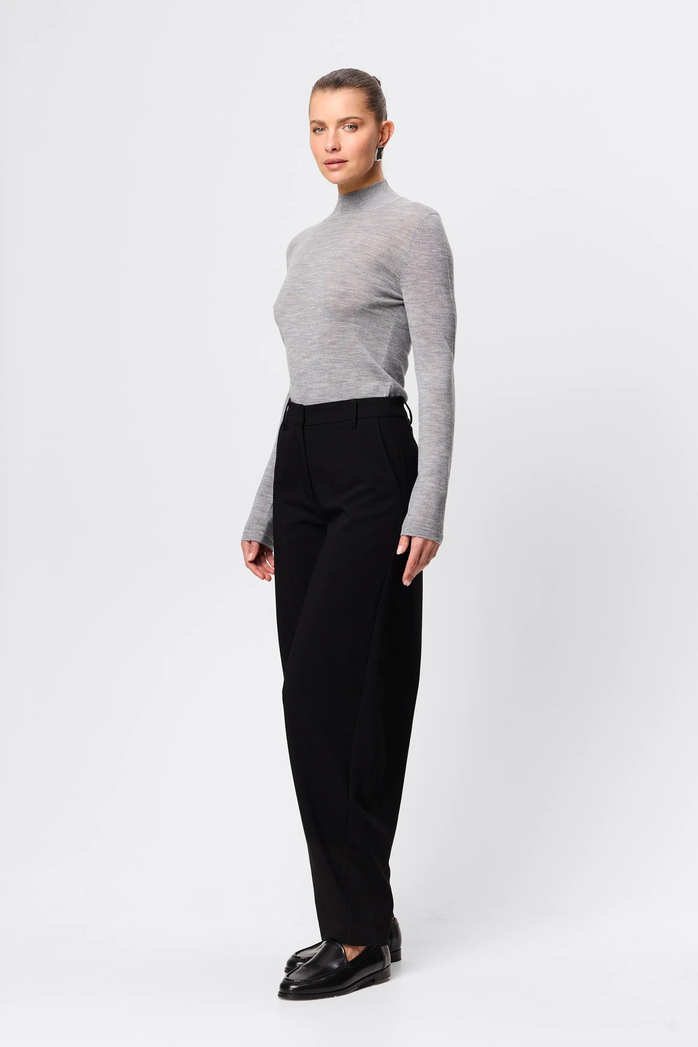 - Tailored waistband with belt loops