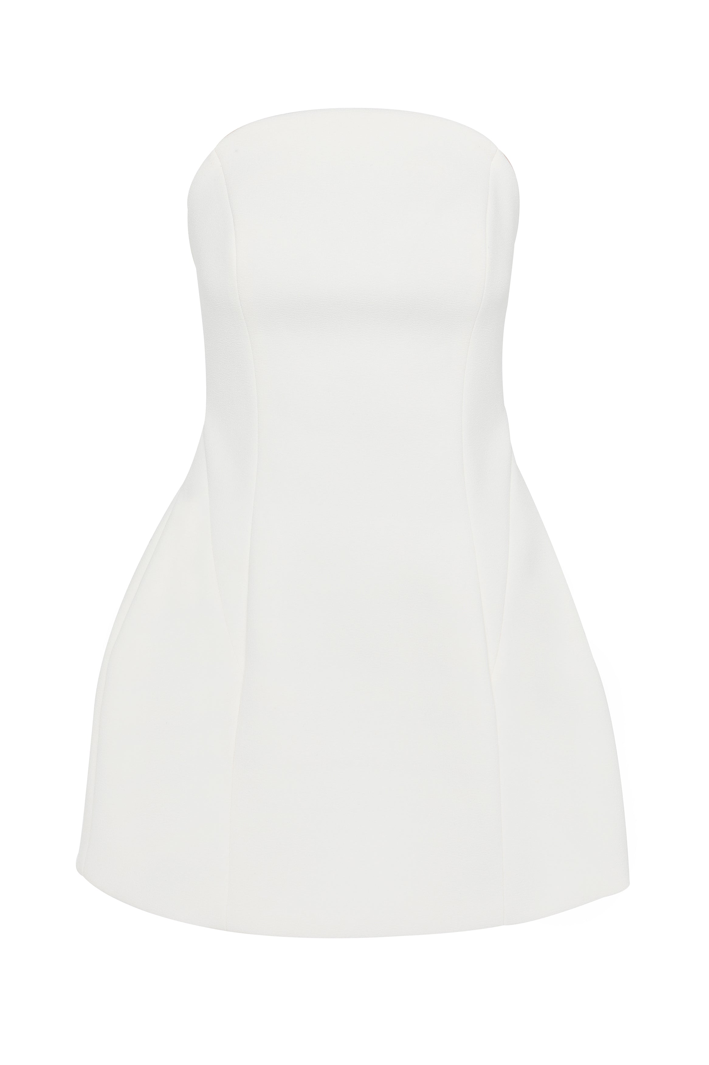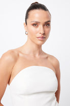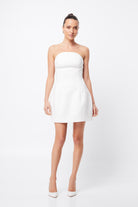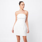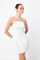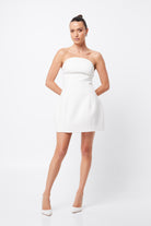 The Tantalise Mini Dress in white offers a modern update to Autumn dressing. Fully lined with a strapless curved neckline, a subtle bell silhouette, and back bow detail, this piece is perfect for date nights or events. Pair with metallic heels for a sleek finish.