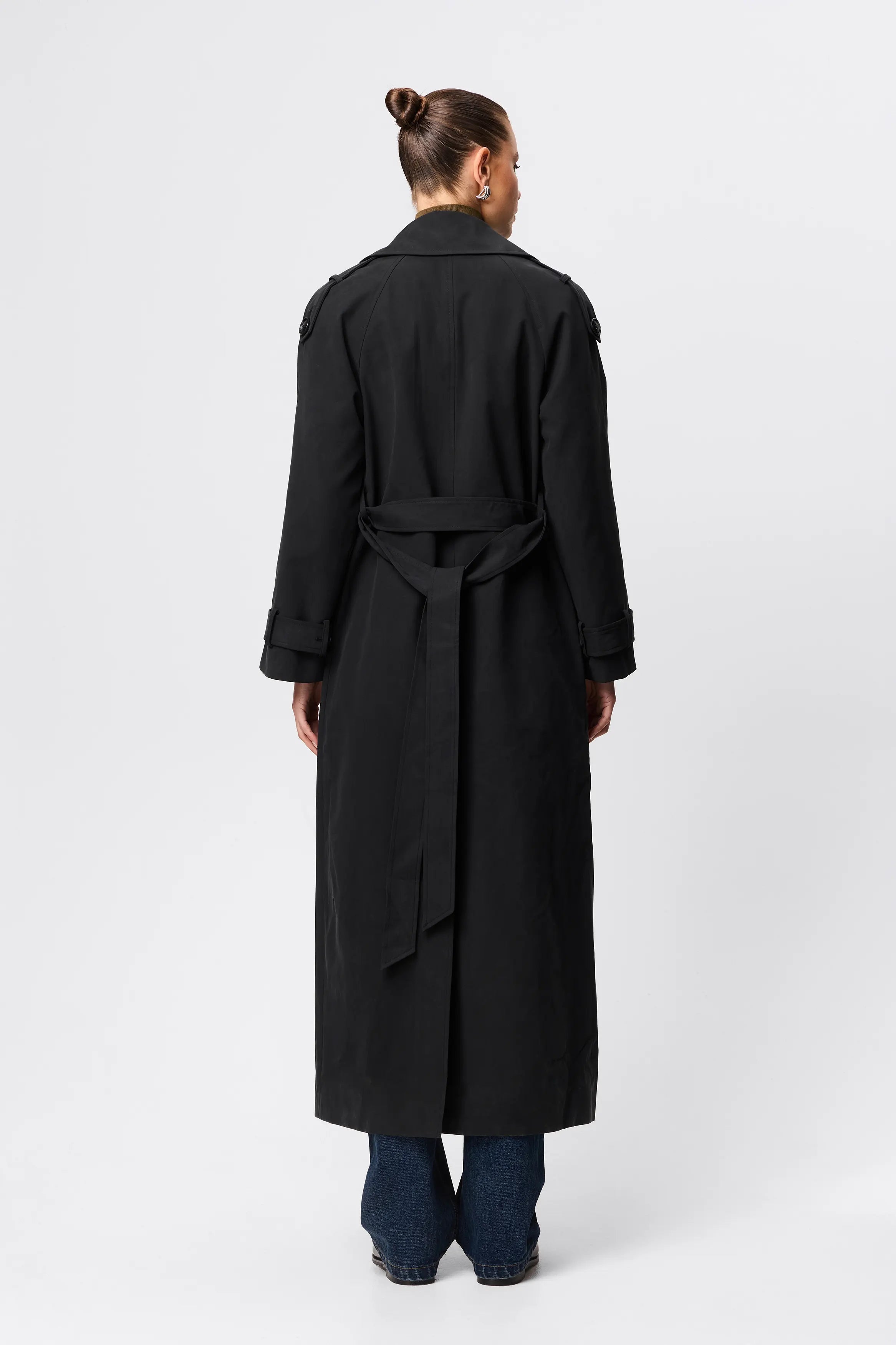 A modern take on a classic, the Franklin Trench Coat in Black is a versatile must-have. With its relaxed fit, structured collar, and self-tie waist, it offers effortless sophistication. Wear it with jeans and a tee for everyday ease or drape it over a dress for timeless appeal. Size down for a more tailored fit.
