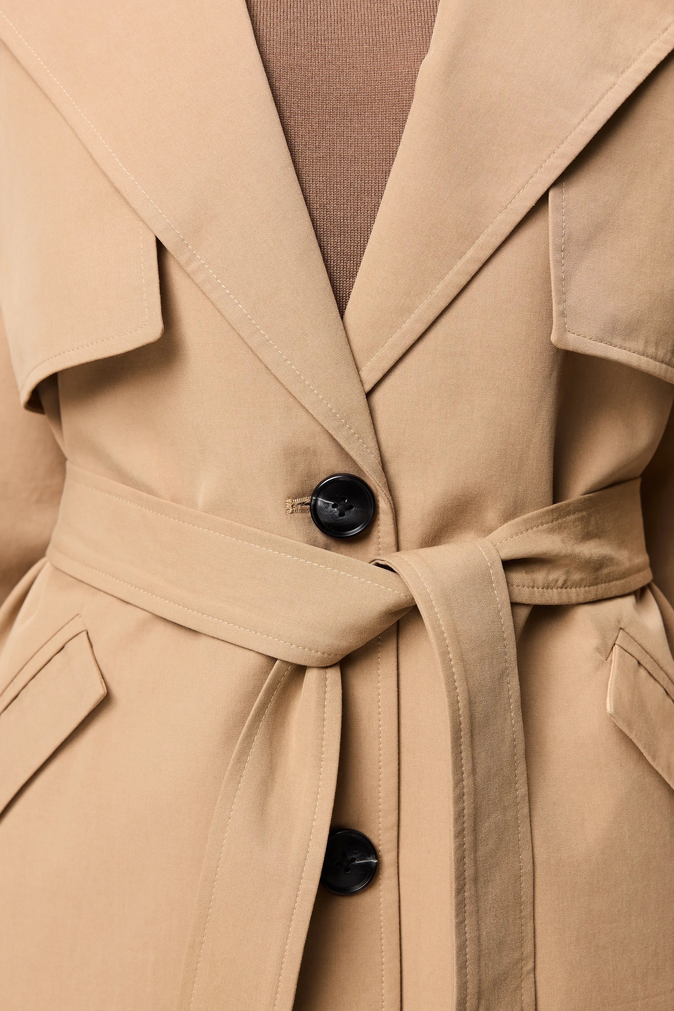 A modern take on a classic, the Franklin Trench Coat in Sand is a versatile must-have. With its relaxed fit, structured collar, and self-tie waist, it offers effortless sophistication. Wear it with jeans and a tee for everyday ease or drape it over a dress for timeless appeal. Size down for a more tailored fit.
