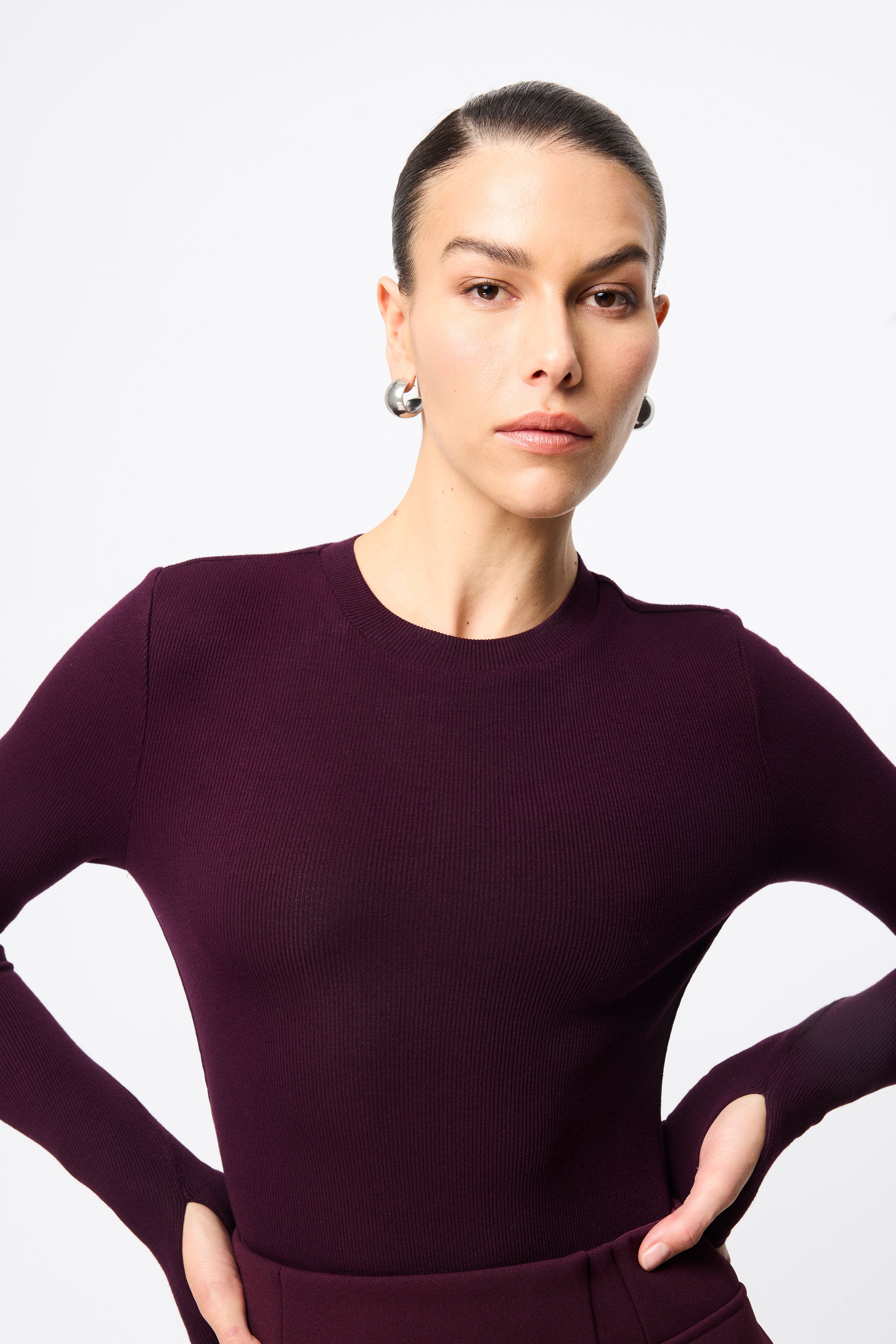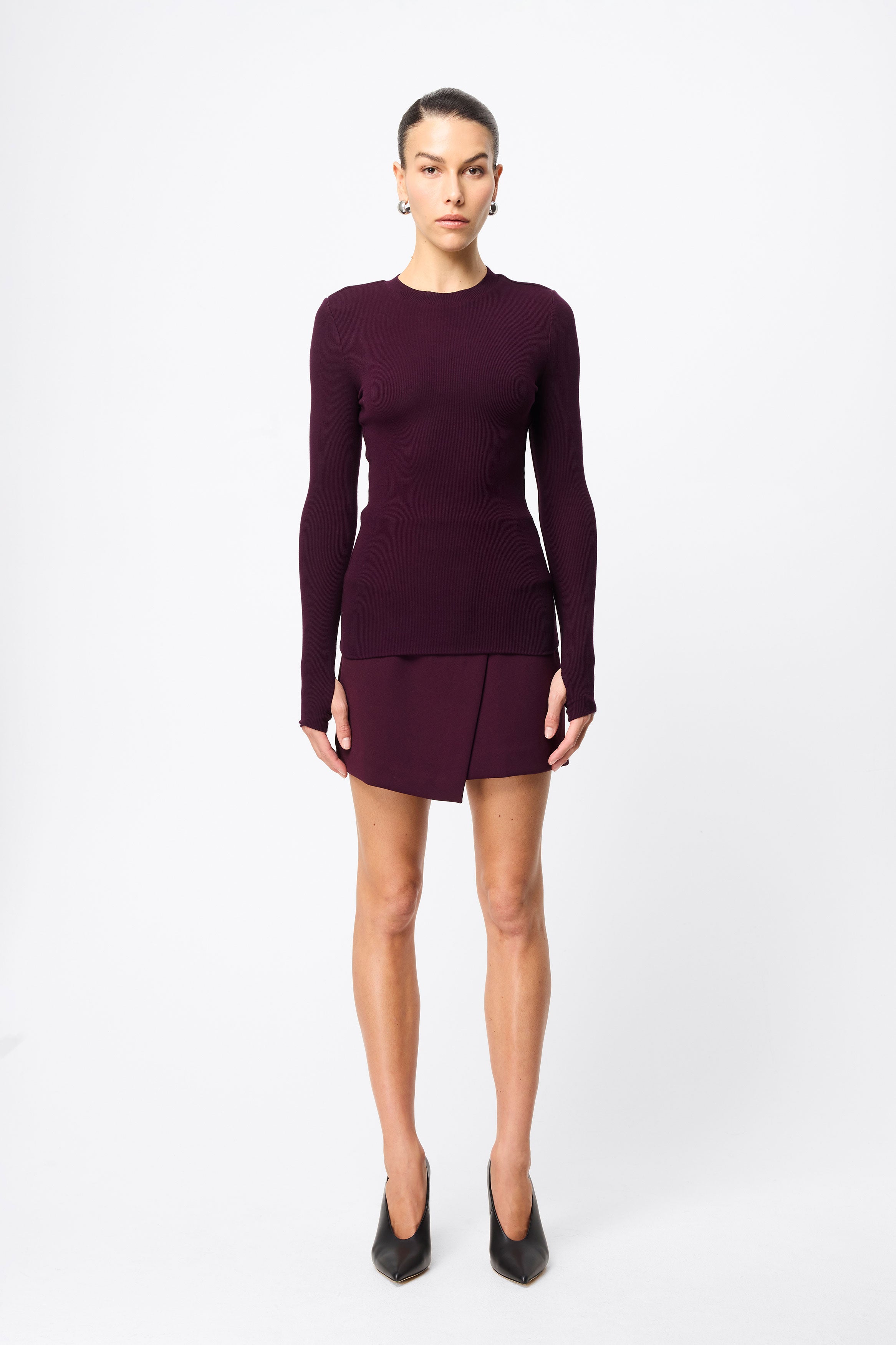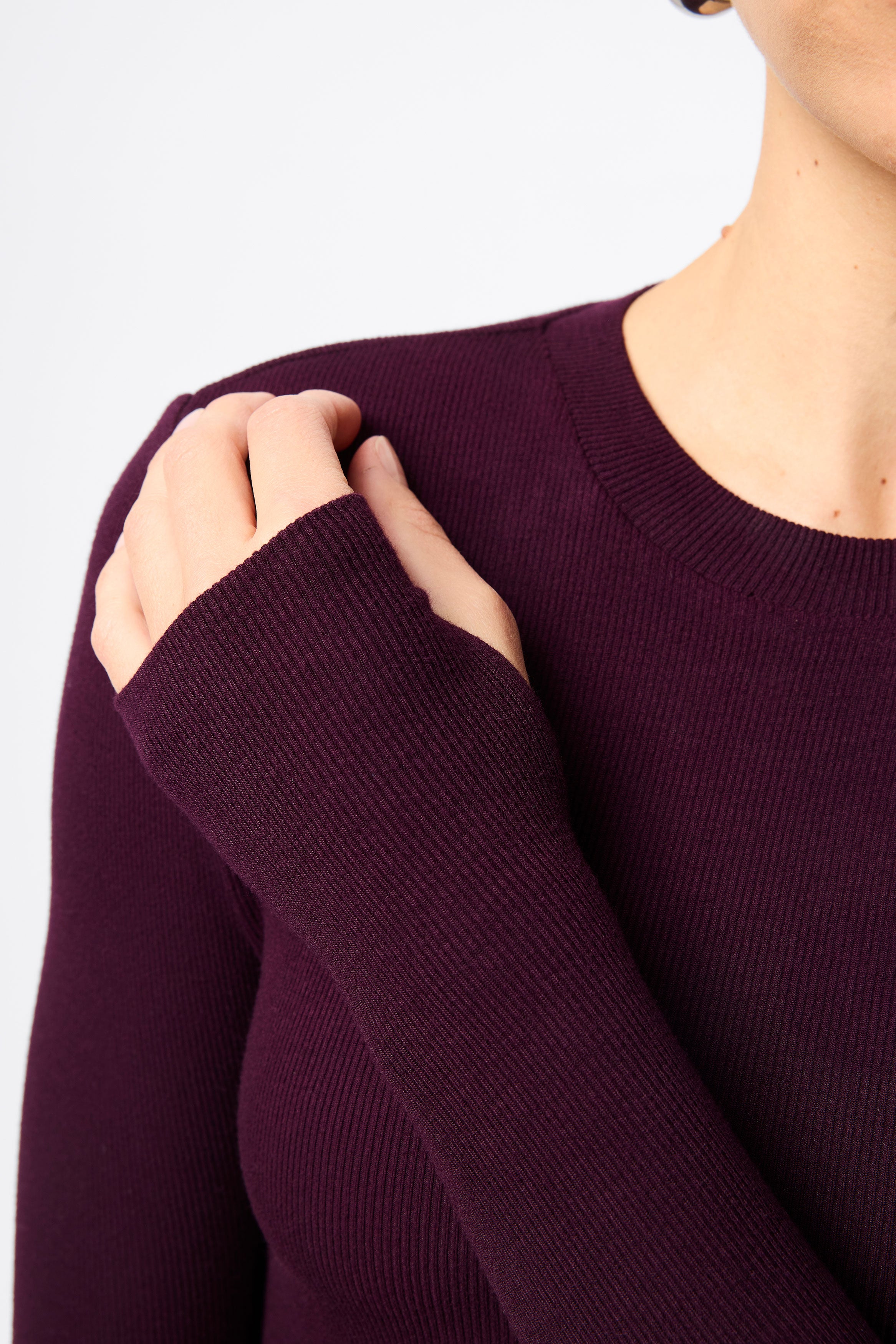 The Brooklyn Top in cherry lacquer is your new go-to ribbed jersey piece. This incredibly soft double-layered top features a round neckline and long sleeves with thumb openings. Endlessly versatile, it can be paired with all your favourite pieces in your wardrobe.