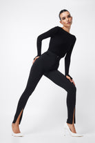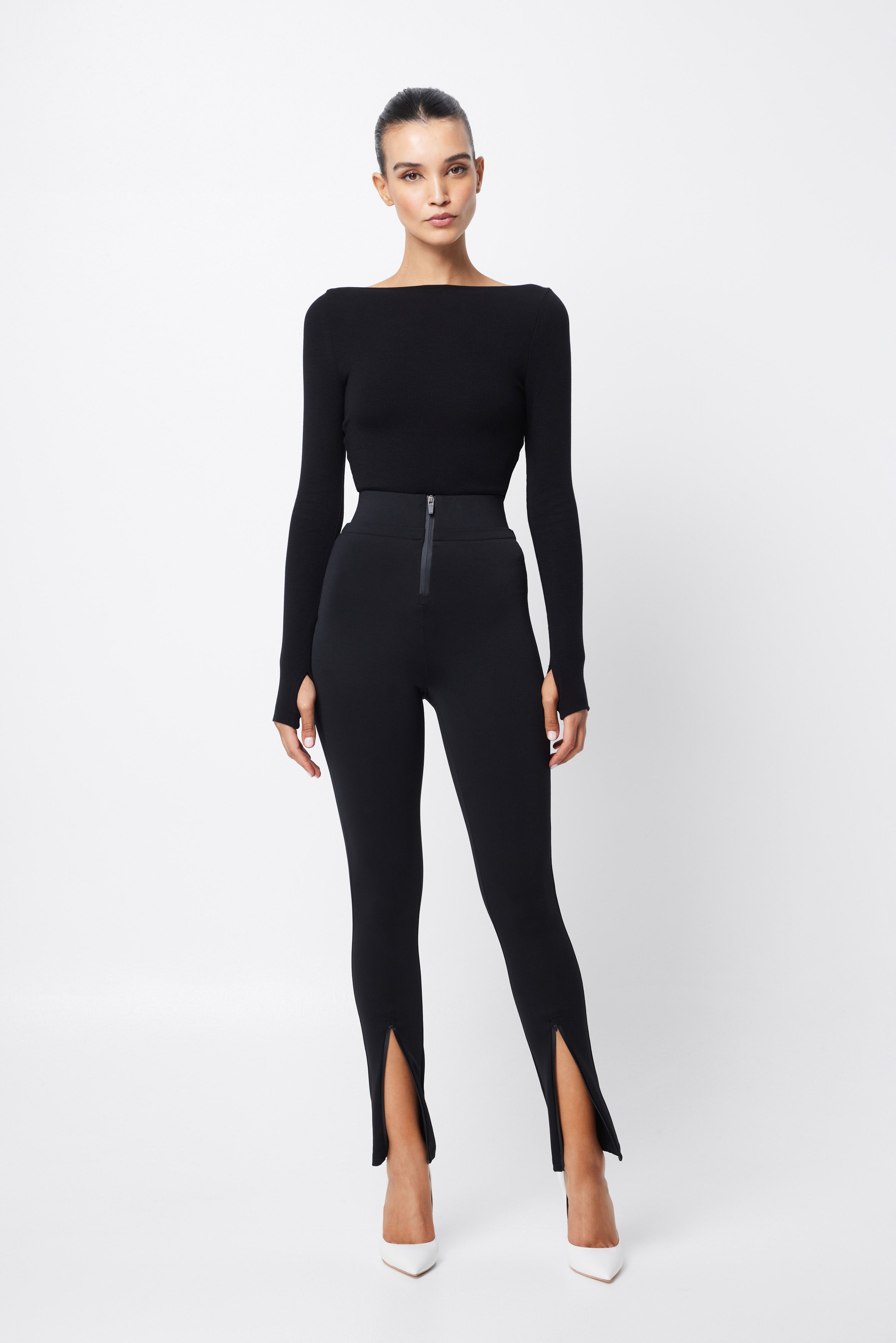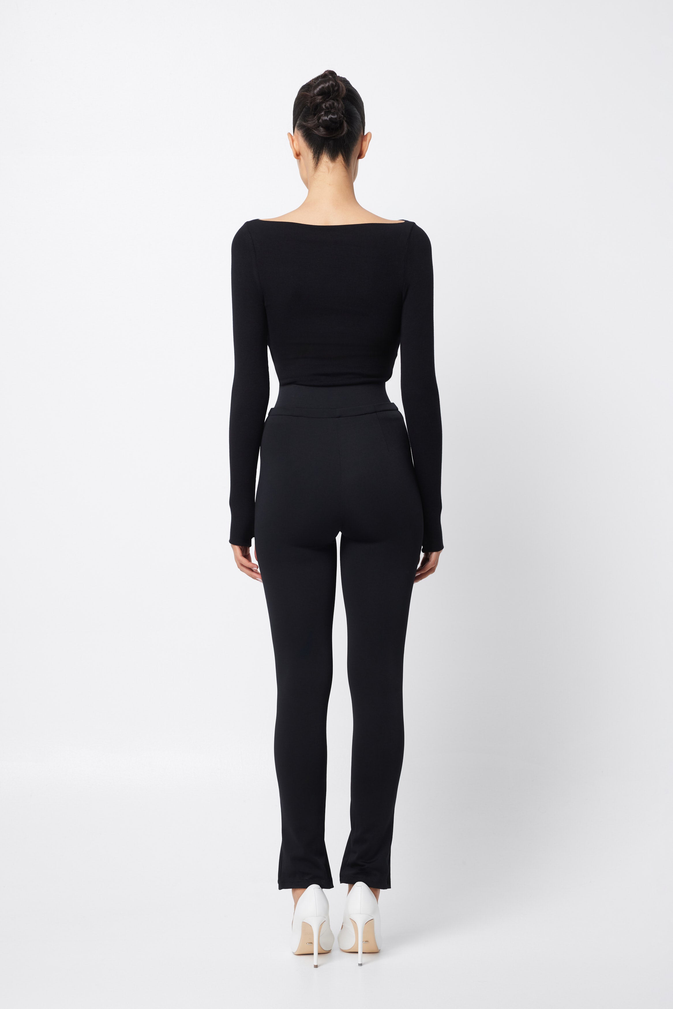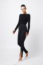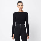The Camden Top in Black, is an evolution of our ever-popular Brooklyn Top. Crafted from a soft, double-layered ribbed jersey fabrication, this top offers a generous amount of stretch featuring a boat neckline and long sleeves with thumb holes. Perfect for keeping you warm during the cooler months, this top can be paired with existing pieces in your wardrobe and seamlessly goes from day to night.