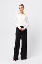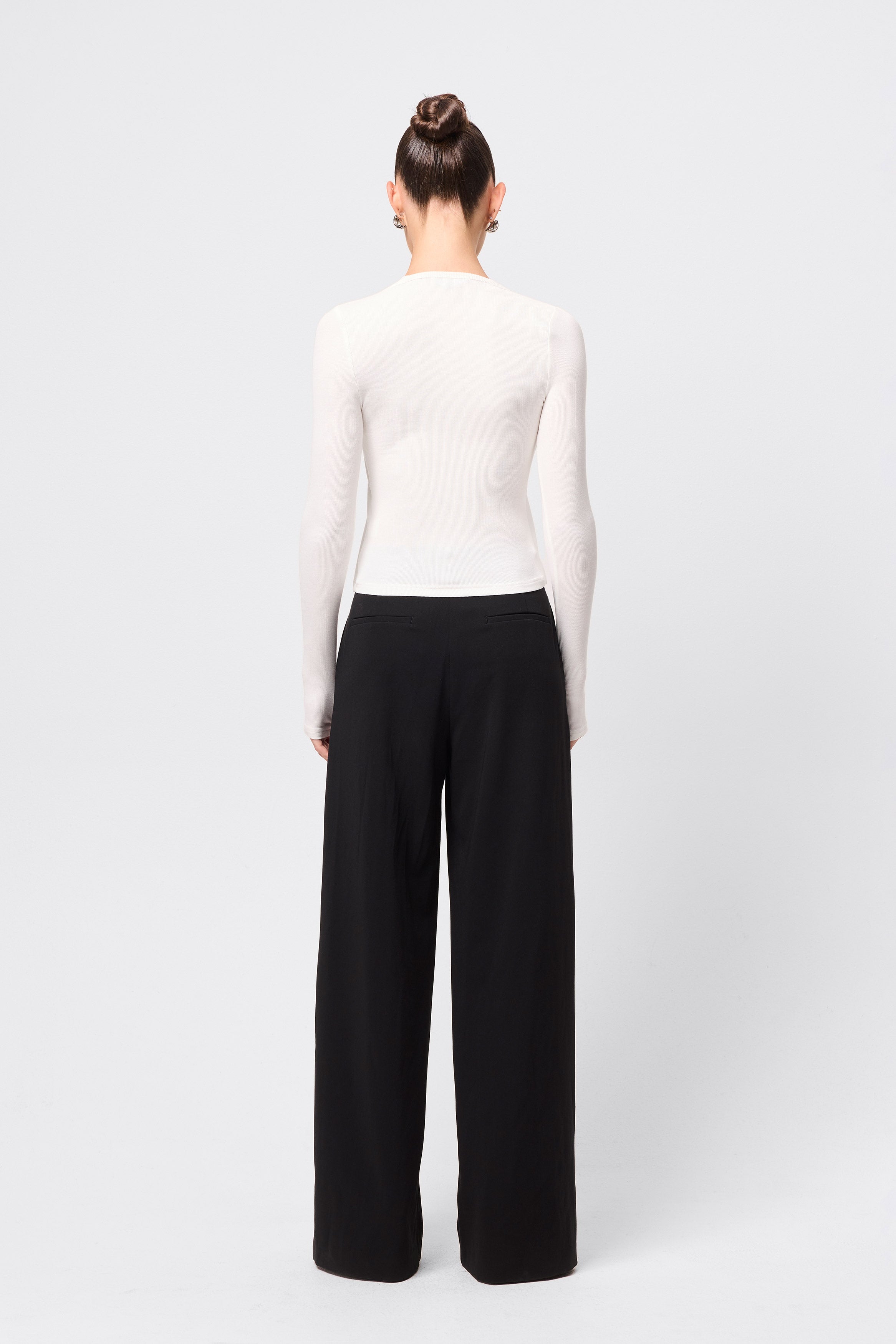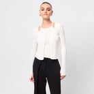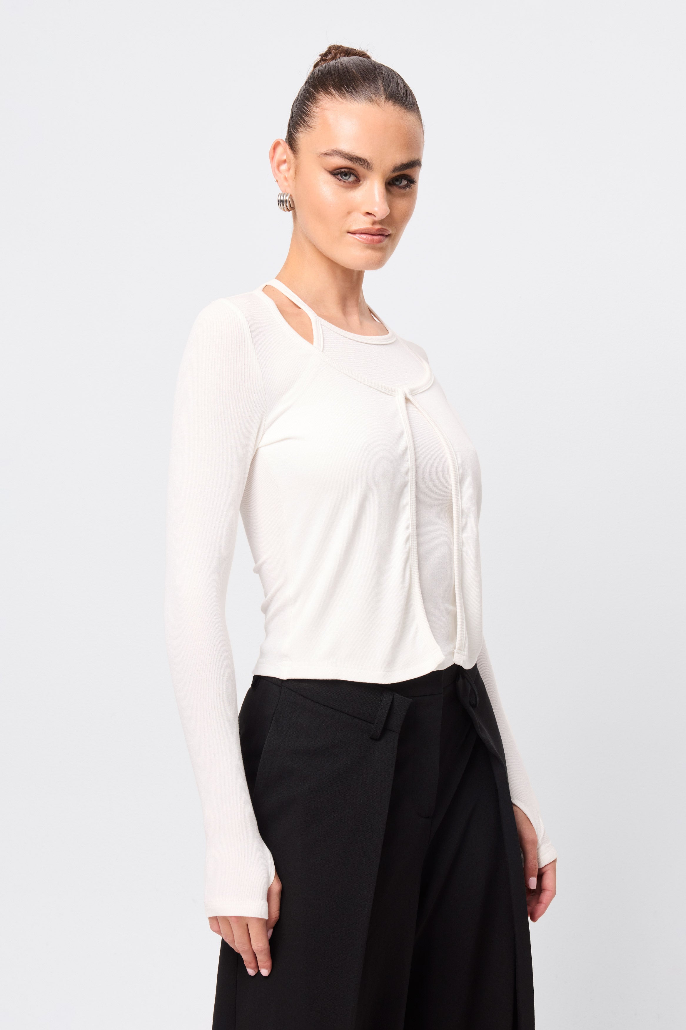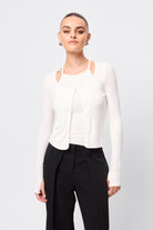 The Reimagine Top in white is crafted in our signature soft double-layered ribbed jersey. Designed to be form-fitting, this top features a double-layer neckline and long sleeves with thumb holes. This top is a stylish and versatile piece that can be paired with existing pieces in your wardrobe for any day of the week.