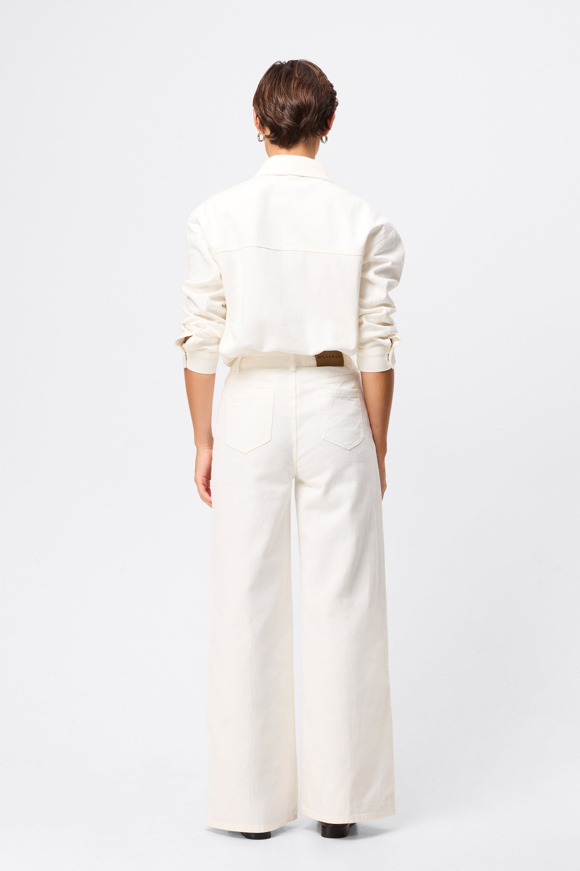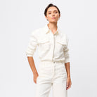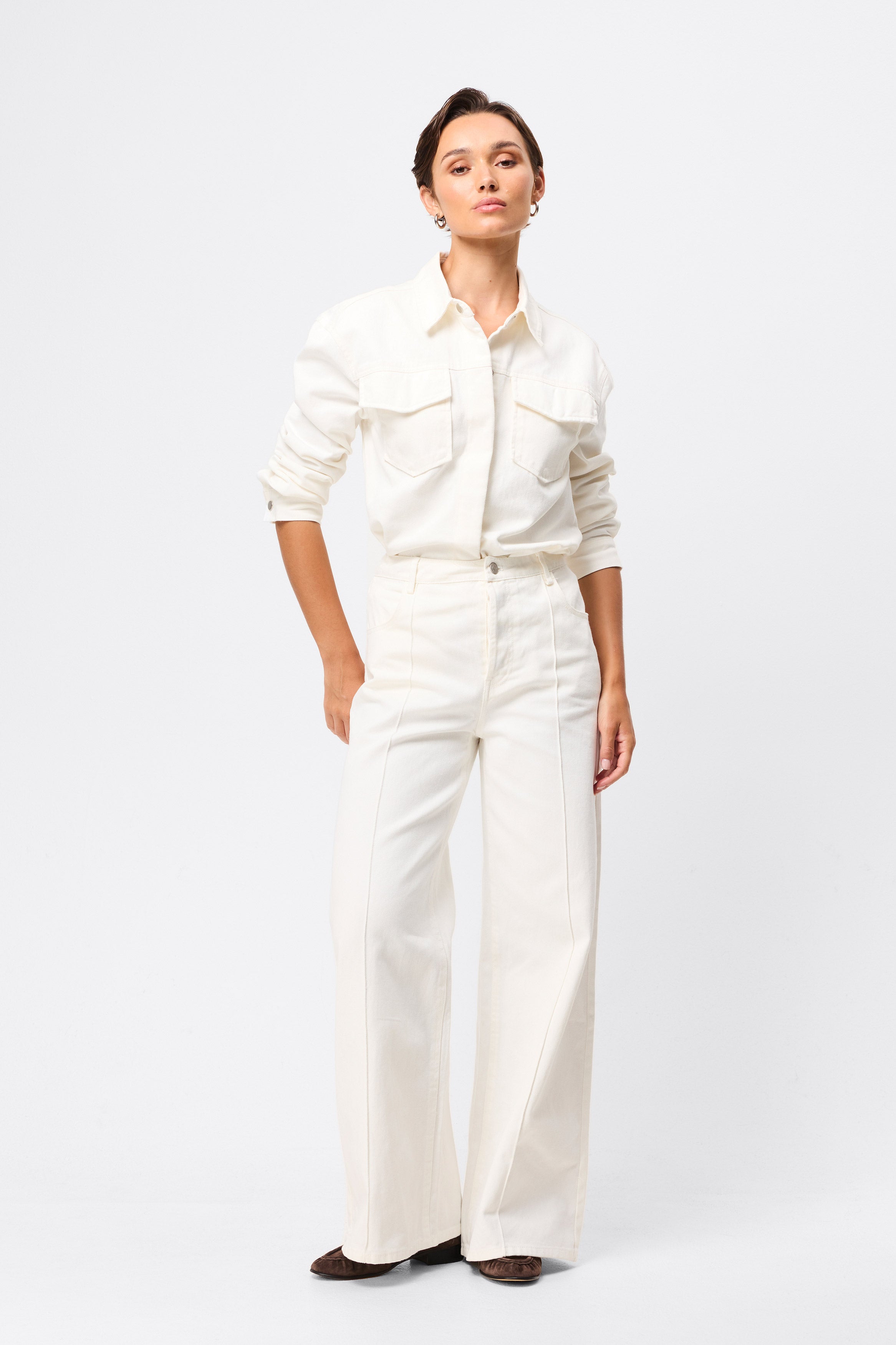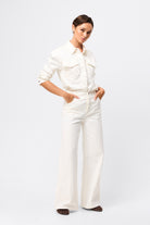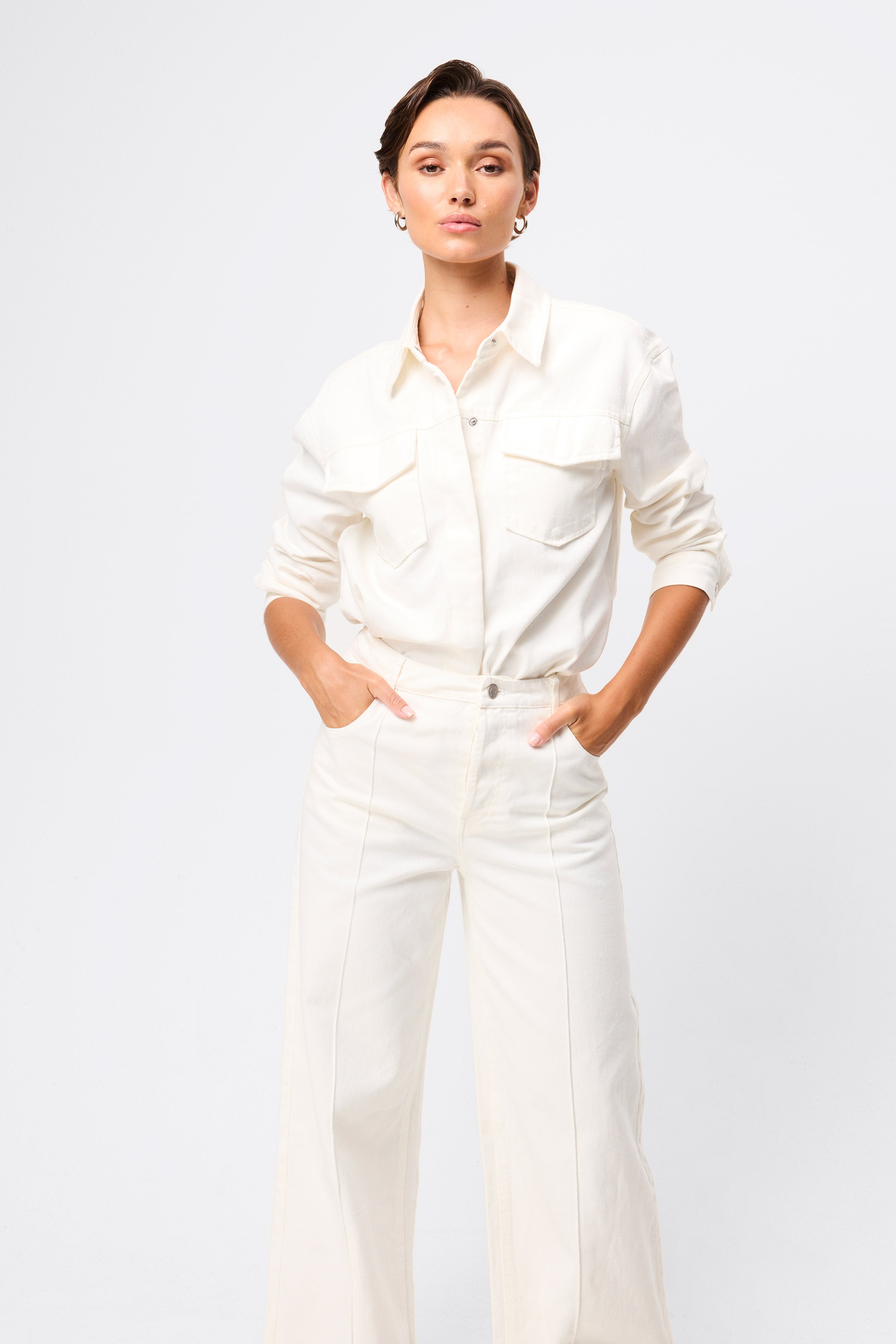 The Transpire Shirt in white is a must-have for your weekend wardrobe. With a relaxed fit, it features flap pockets and a curved hem. Pair it with the Bexley Jean for a stylish double denim look that’s perfect for any occasion.