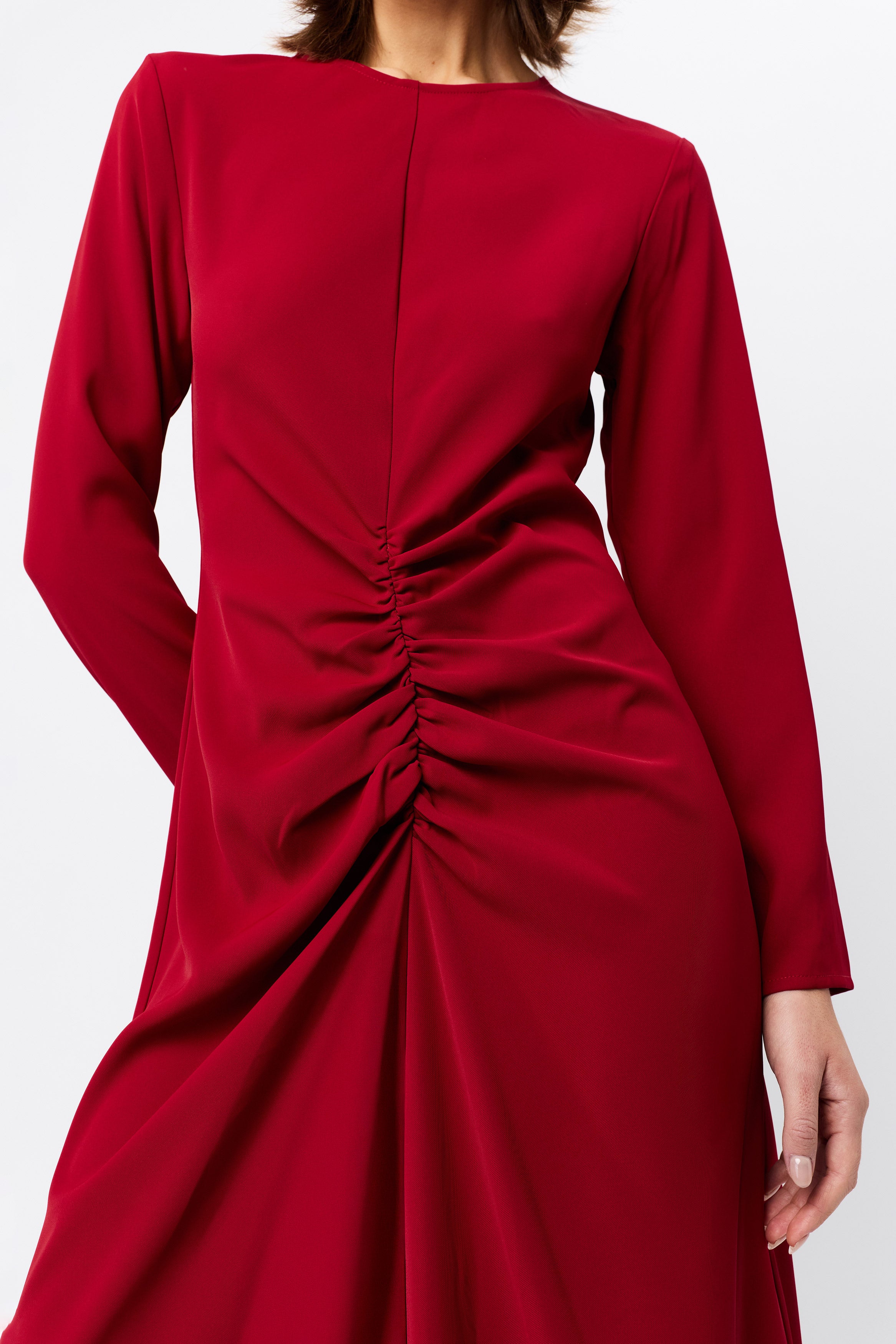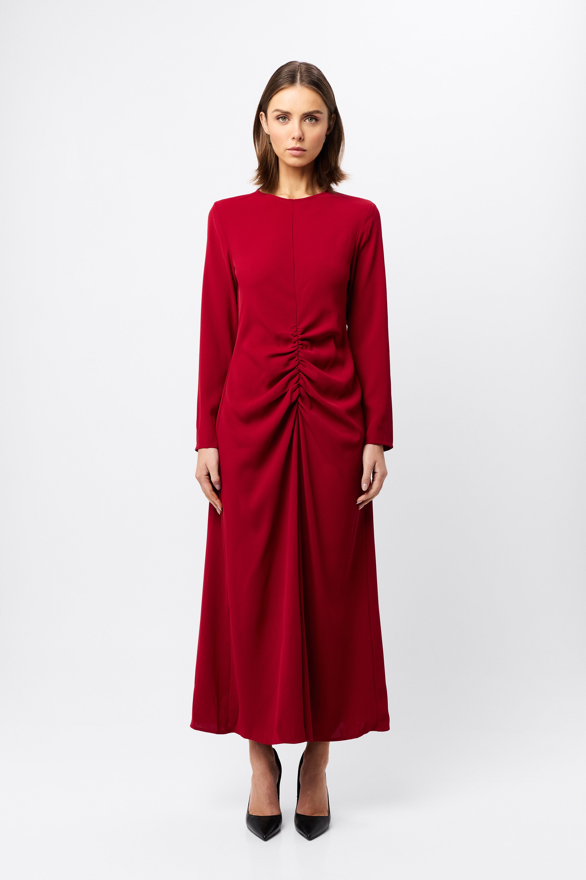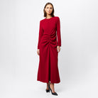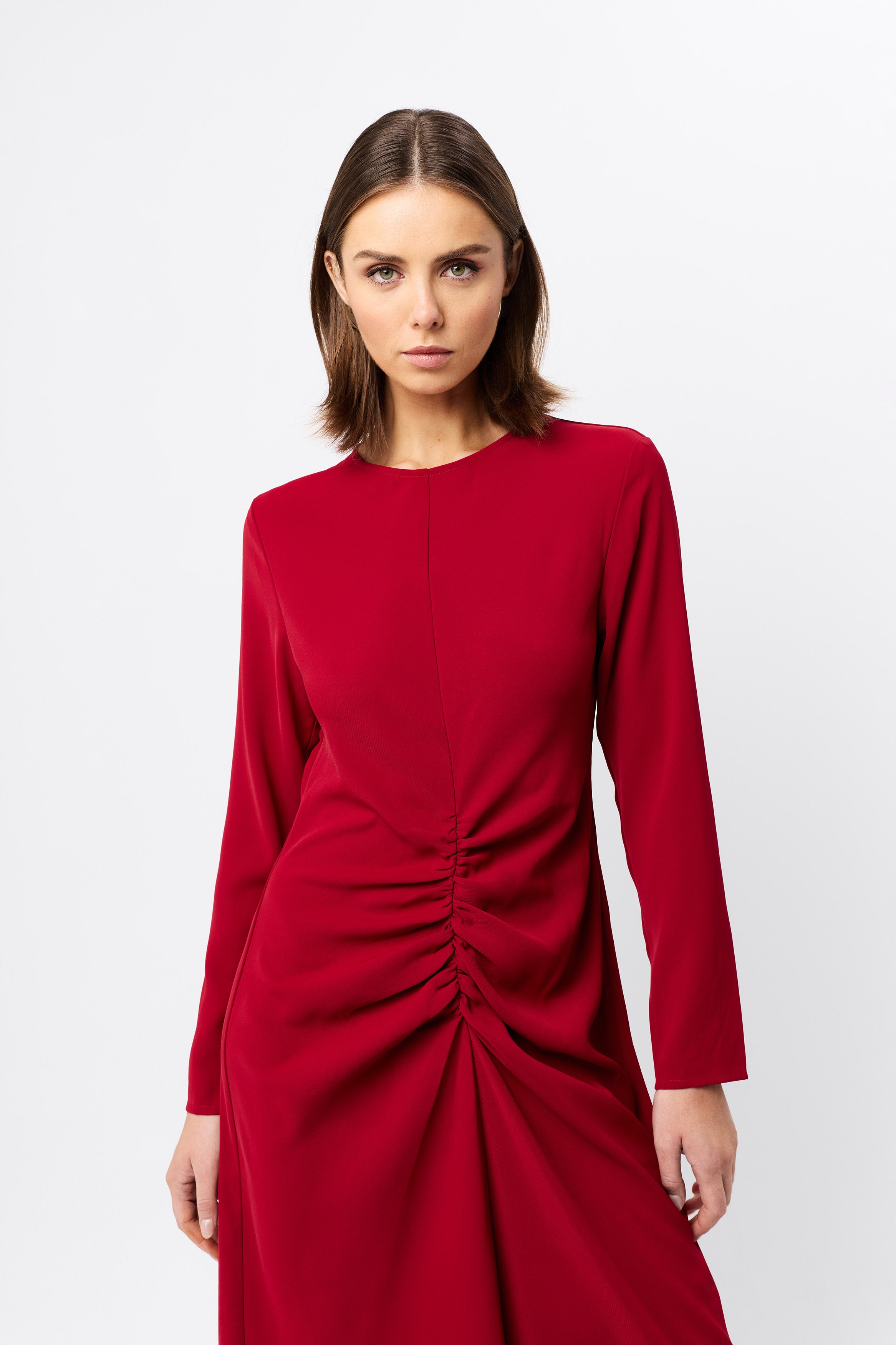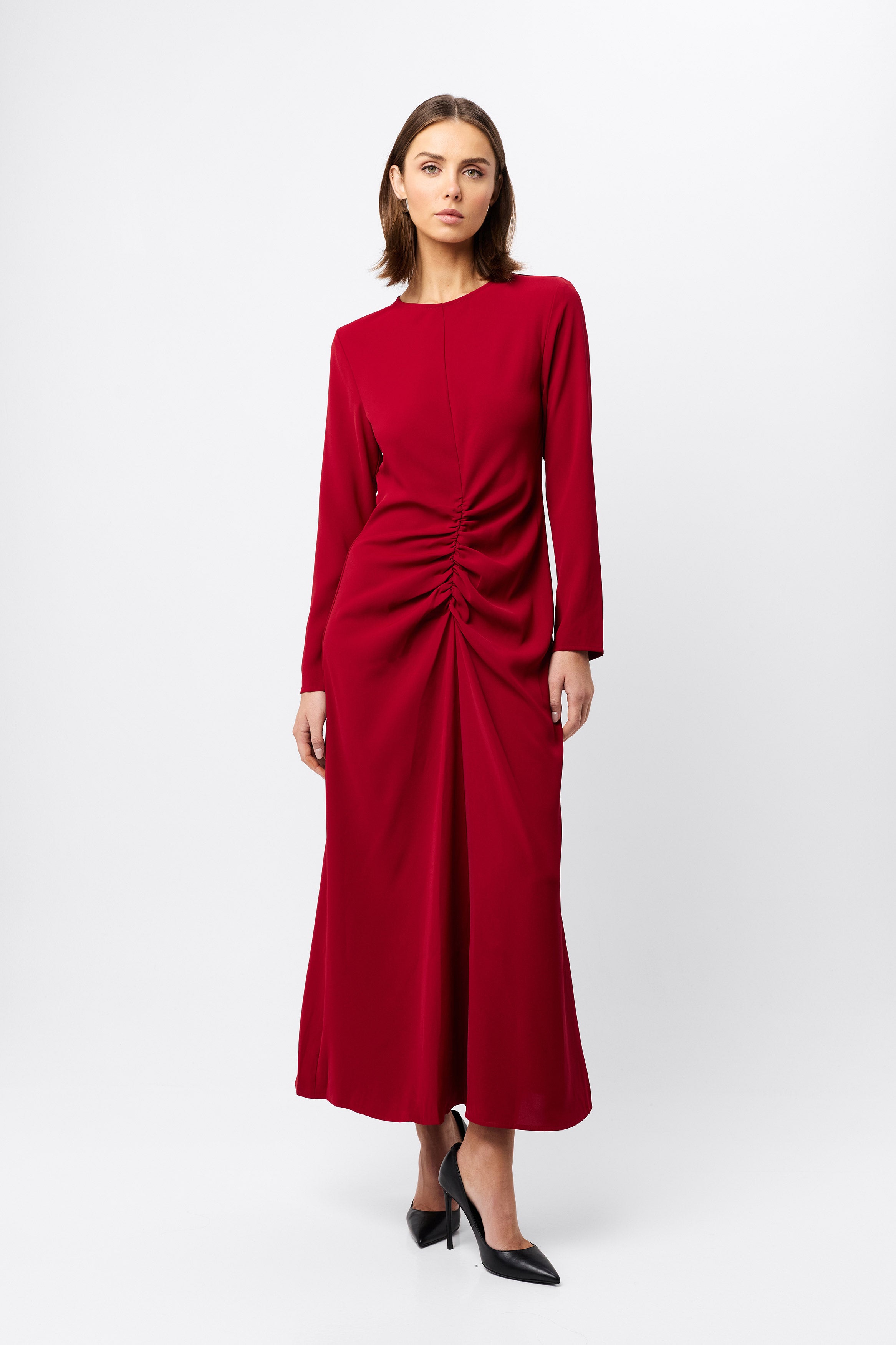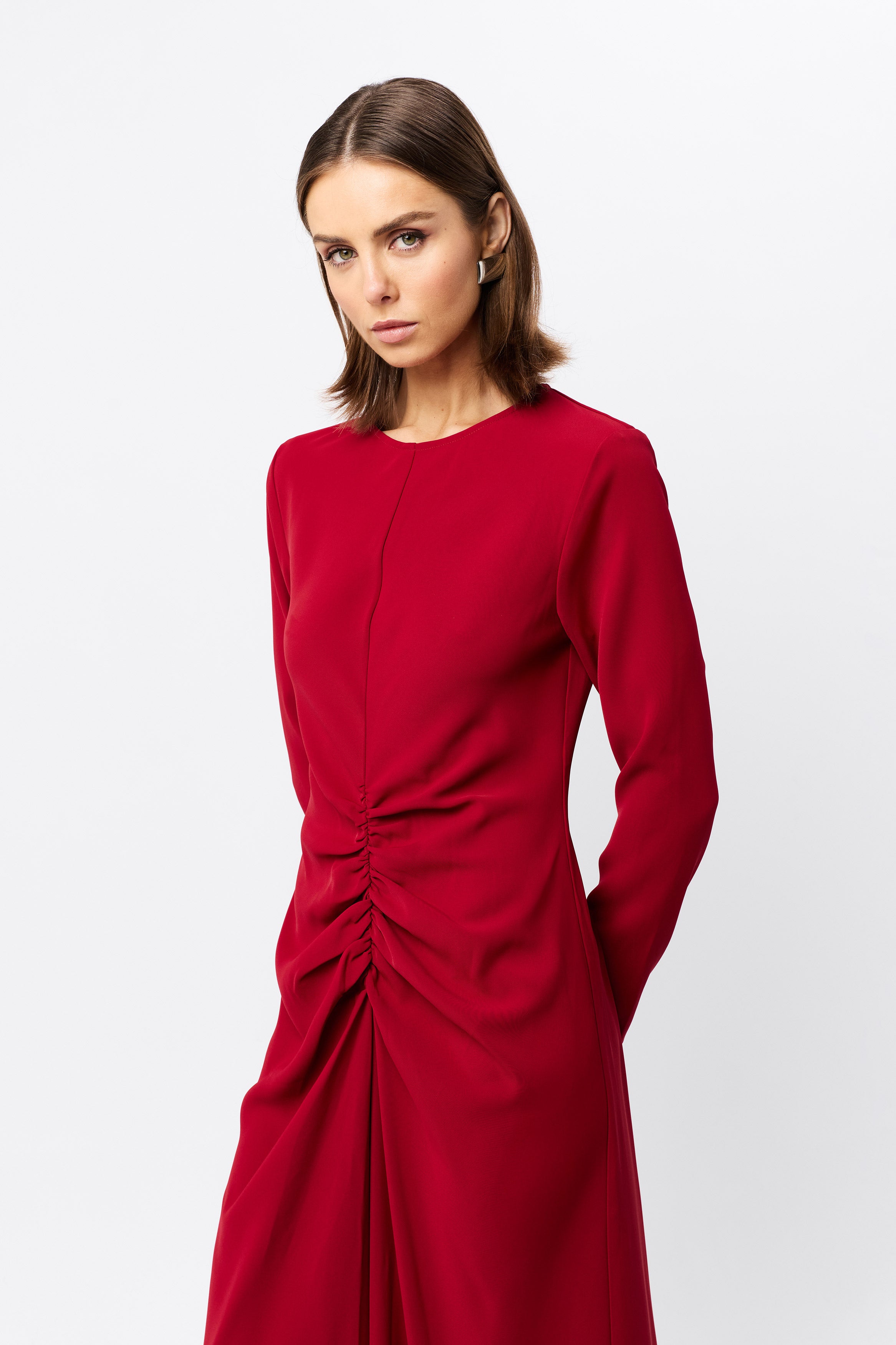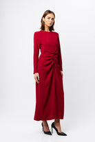 The Never Enough Maxi Dress in bold crimson delivers elegance with a contemporary twist. Featuring a round neckline, long sleeves, and fixed ruching detail through the torso, this dress has a body-skimming silhouette for a flattering fit. This dress can be styled for a range of occasions, ideal for weddings and special celebrations.
