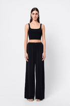 Relaxed elegance defines the Free Falling Pant in Black. Crafted from a soft, premium jersey fabrication, this wide-leg silhouette offers fluid movement and all-day comfort. Designed with an elasticated waistband and functional inseam pockets, it’s a timeless wardrobe staple that transitions effortlessly between settings — pair it with a tank for elevated minimalism, or style it with the Free Falling Top for a cohesive monochromatic ensemble.