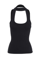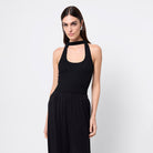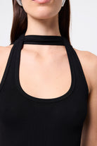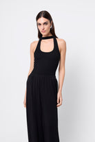 A modern take on the classic tank, the Outline Tank in Black redefines minimalism with an architectural edge. Crafted from a soft ribbed jersey fabrication, this fitted silhouette features front and back halter straps that create a contemporary neckline detail. Effortlessly versatile, it’s a foundational wardrobe piece designed to pair seamlessly with tailored separates.