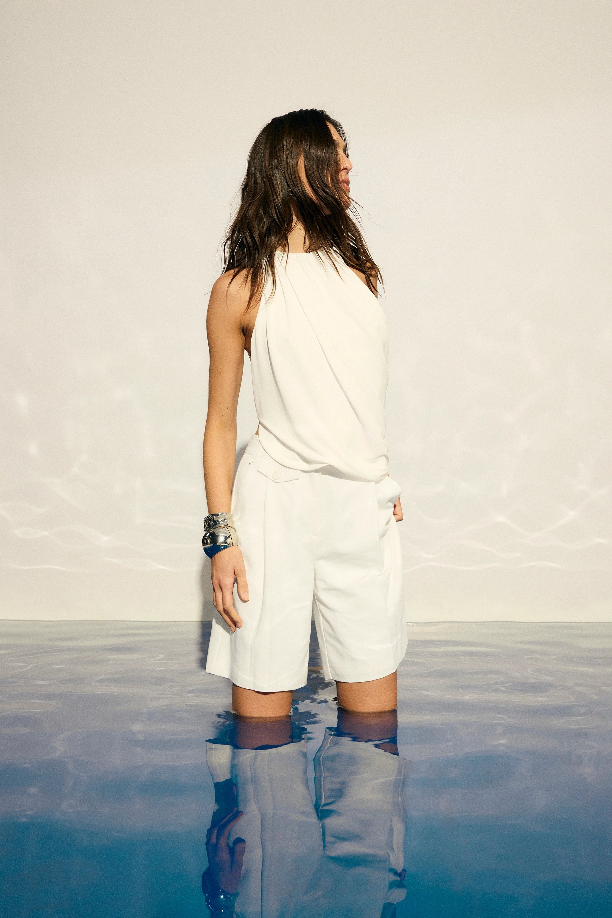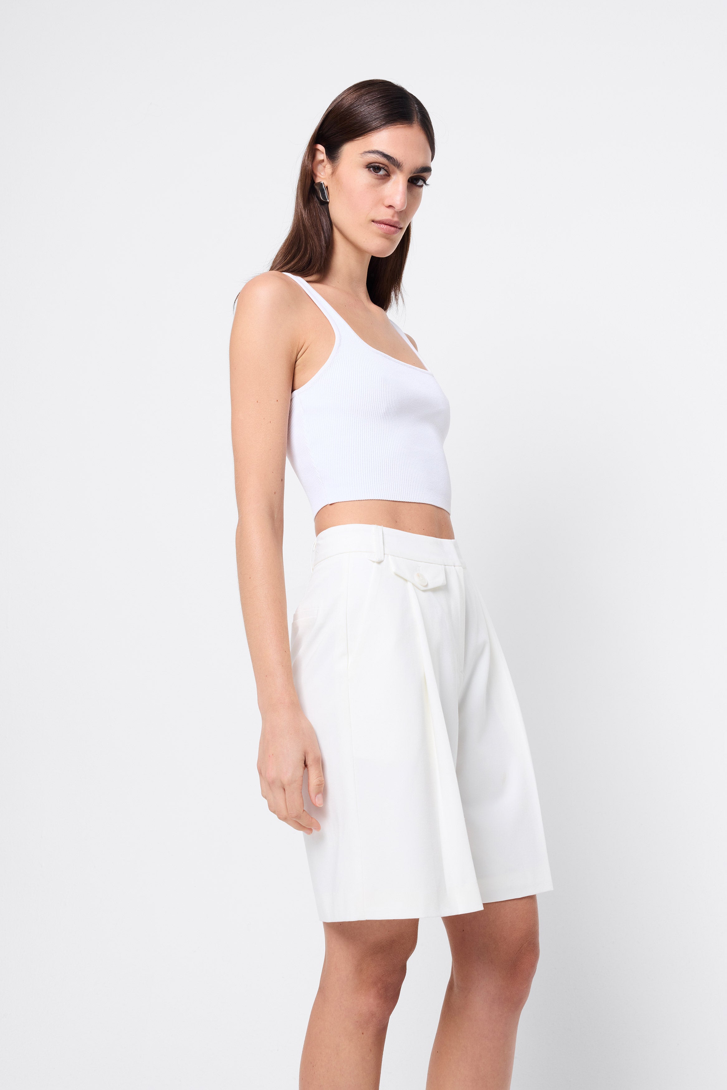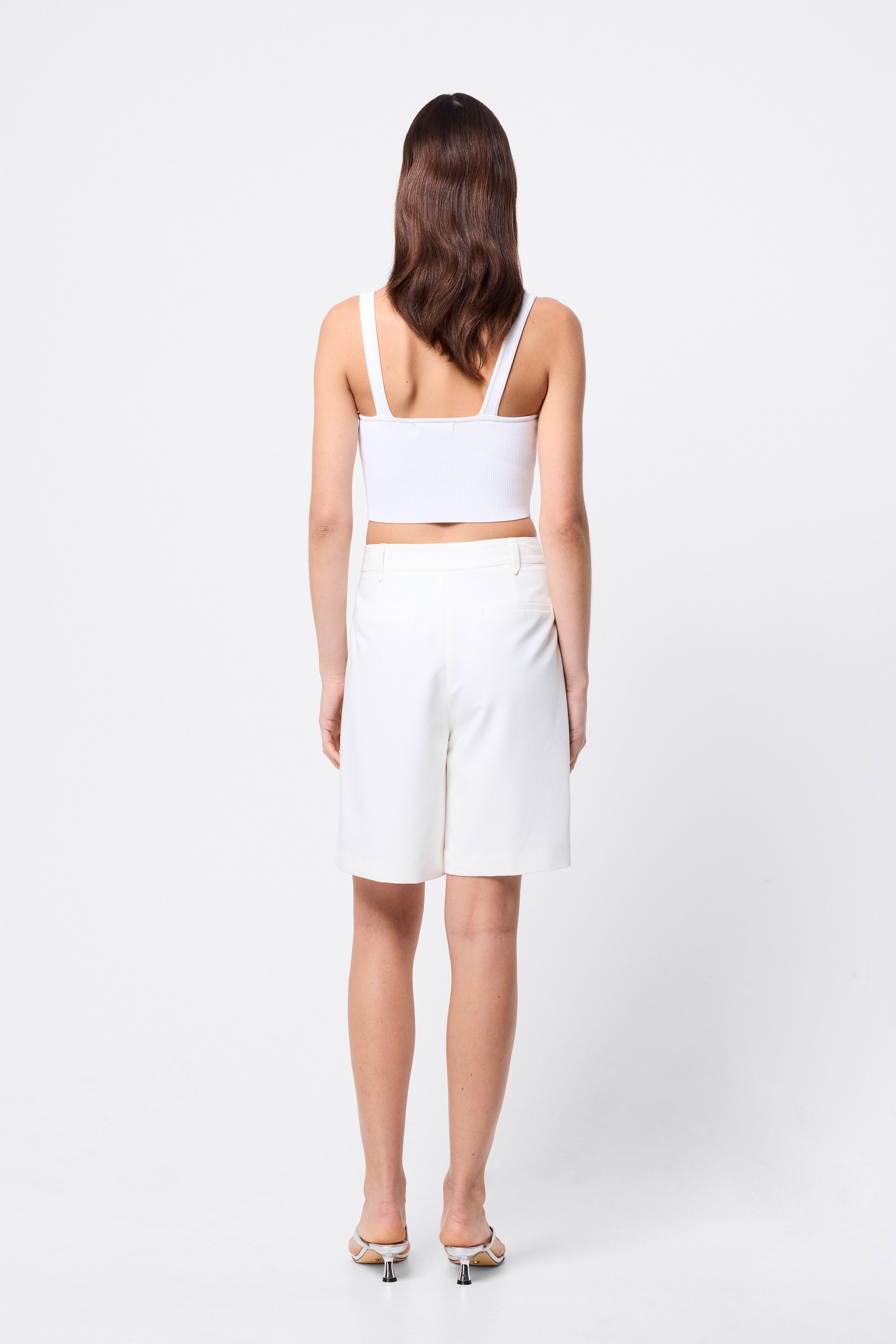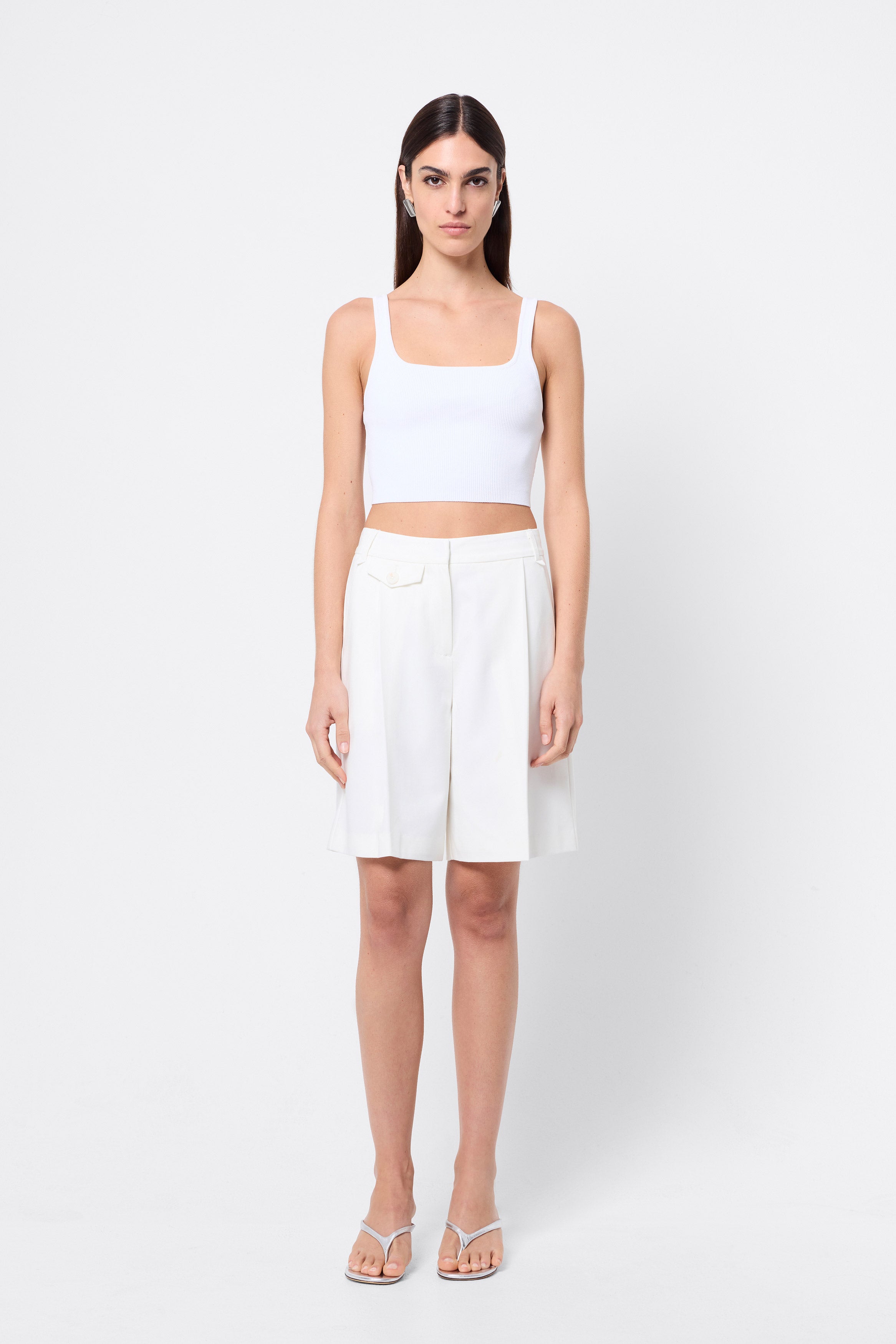 A wardrobe staple, the Boston Short in White is crafted from soft suiting fabric, offering a refined yet relaxed silhouette. Designed with a flattering wide-leg cut, they feature single front pleats, functional side pockets, and coin pocket detailing at the waist for a tailored finish. Style with a vest for a sharp, polished look or pair with a soft knit for effortless off-duty appeal.