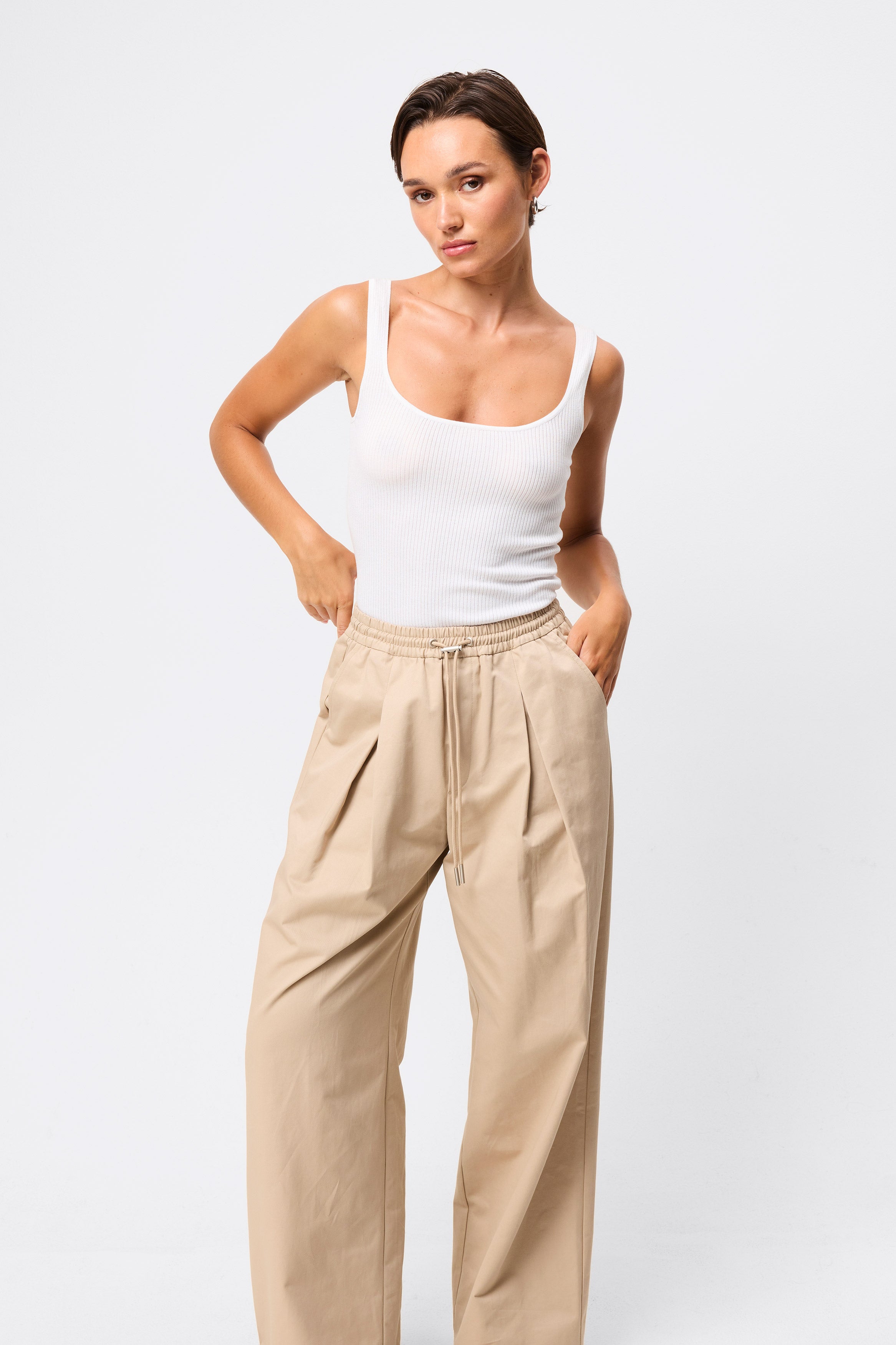 The Fine Line Knit Tank in White blends elegance and ease in a timeless silhouette. Crafted from high-quality ribbed knit fabric, it features thin straps and a scoop neckline at both the front and back for a flattering, minimalist finish. Designed to transition effortlessly from casual to elevated occasions, this singlet is a versatile staple you'll wear on repeat. Style it under tailoring for a refined look or wear it solo for understated, everyday polish.