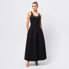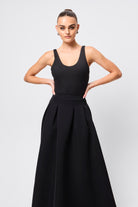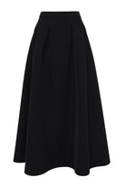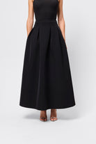 The Adoration Maxi Skirt in classic black delivers bold structure and refined sophistication. Crafted from a premium bonded woven fabrication, this high-waisted A-line silhouette features a sleek fixed waistband, eye-catching front inverted pleats, and functional side pockets. Finished with an invisible centre-back zip for a seamless fit, it transitions effortlessly from day to night. Style with the Bliss Bodysuit or an elevated shirt for a modern take on classic dressing.