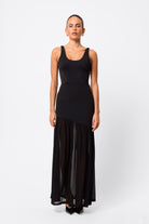 The Make Your Move Maxi Skirt in Black is a modern statement piece that balances structure with fluidity. Designed with a fitted waist and hip for a sculpted silhouette, it falls into a voluminous sheer hemline with a diagonal seam that adds movement and edge. Crafted in classic black, this versatile style features a shell hem finish for a polished touch. Effortlessly on-trend and undeniably refined, it’s a piece that can be dressed up with heels for evening sophistication or styled down with casual separates for everyday impact.