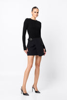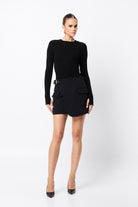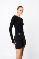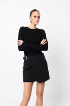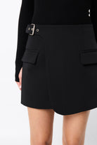 With its sculptural design and modern edge, the Rebellion Mini Skirt in Black features a slim A-line silhouette with an asymmetric wrap front, adjustable buckle detail, and faux flap pockets. Fully lined with an invisible back zip for a seamless finish, this piece balances structure and statement. Pair it with a crisp white shirt for a polished look or style it with the matching Rebellion Cropped Blazer for a bold, coordinated set.