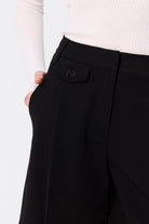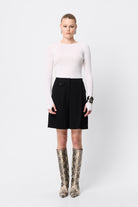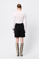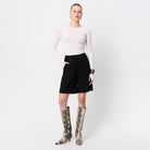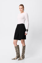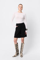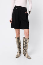 A wardrobe staple, the Boston Shorts in Black are crafted from soft suiting fabric, offering a refined yet relaxed silhouette. Designed with a flattering wide-leg cut, they feature single front pleats, functional side pockets, and coin pocket detailing at the waist for a tailored finish. Style with the By Your Side Vest for a sharp, polished look or pair with a soft knit for effortless off-duty appeal.