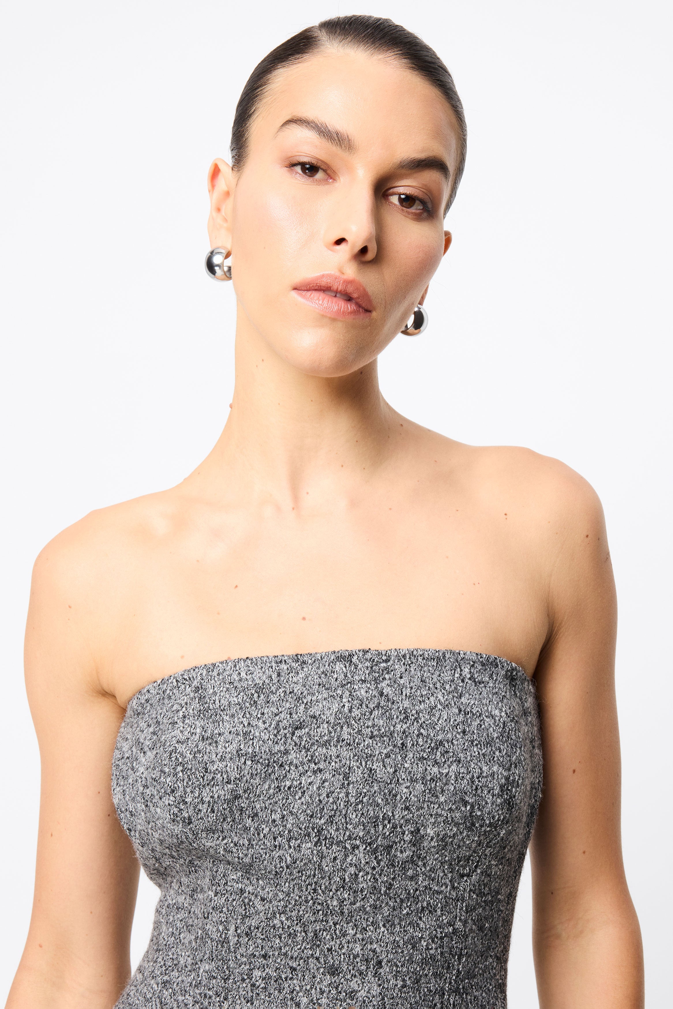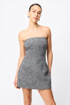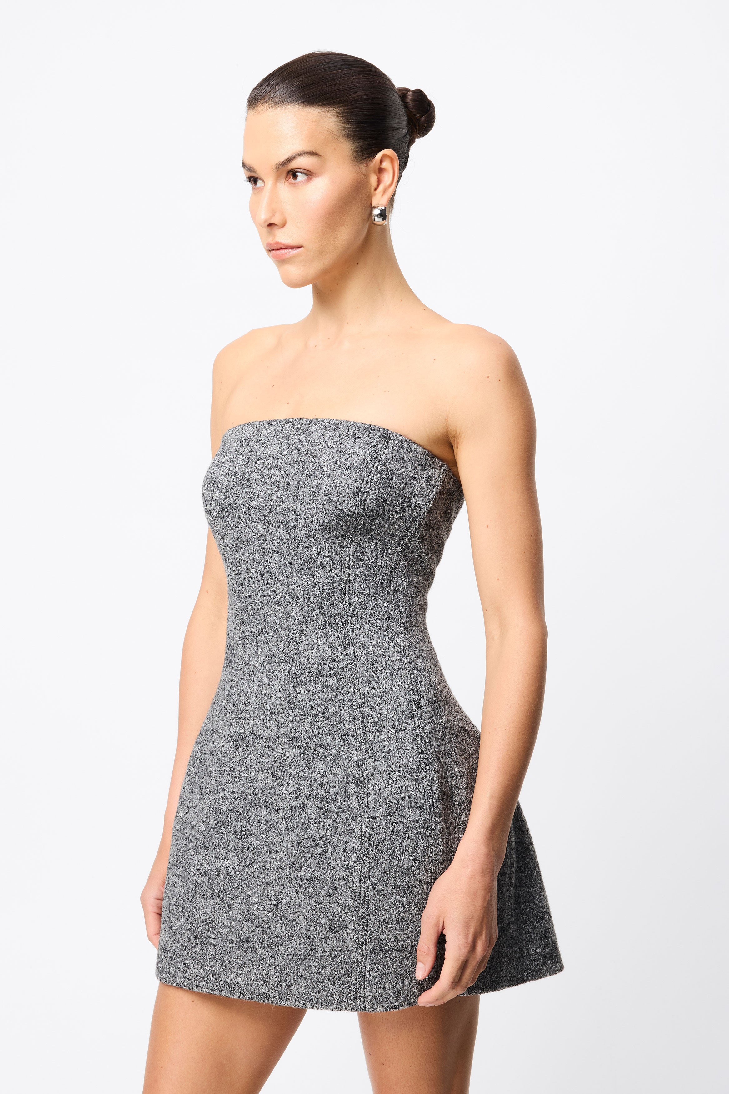 Crafted from a premium wool blend boucle fabrication, the Overcast Mini Dress in Charcoal design features a strapless bodice with boning for structure, creating a flattering and refined shape. Perfect for day-to-night dressing, pair it with the matching Overcast Coat and boots for effortless desk-to-dinner chic or sharp heels for a sophisticated date night look.