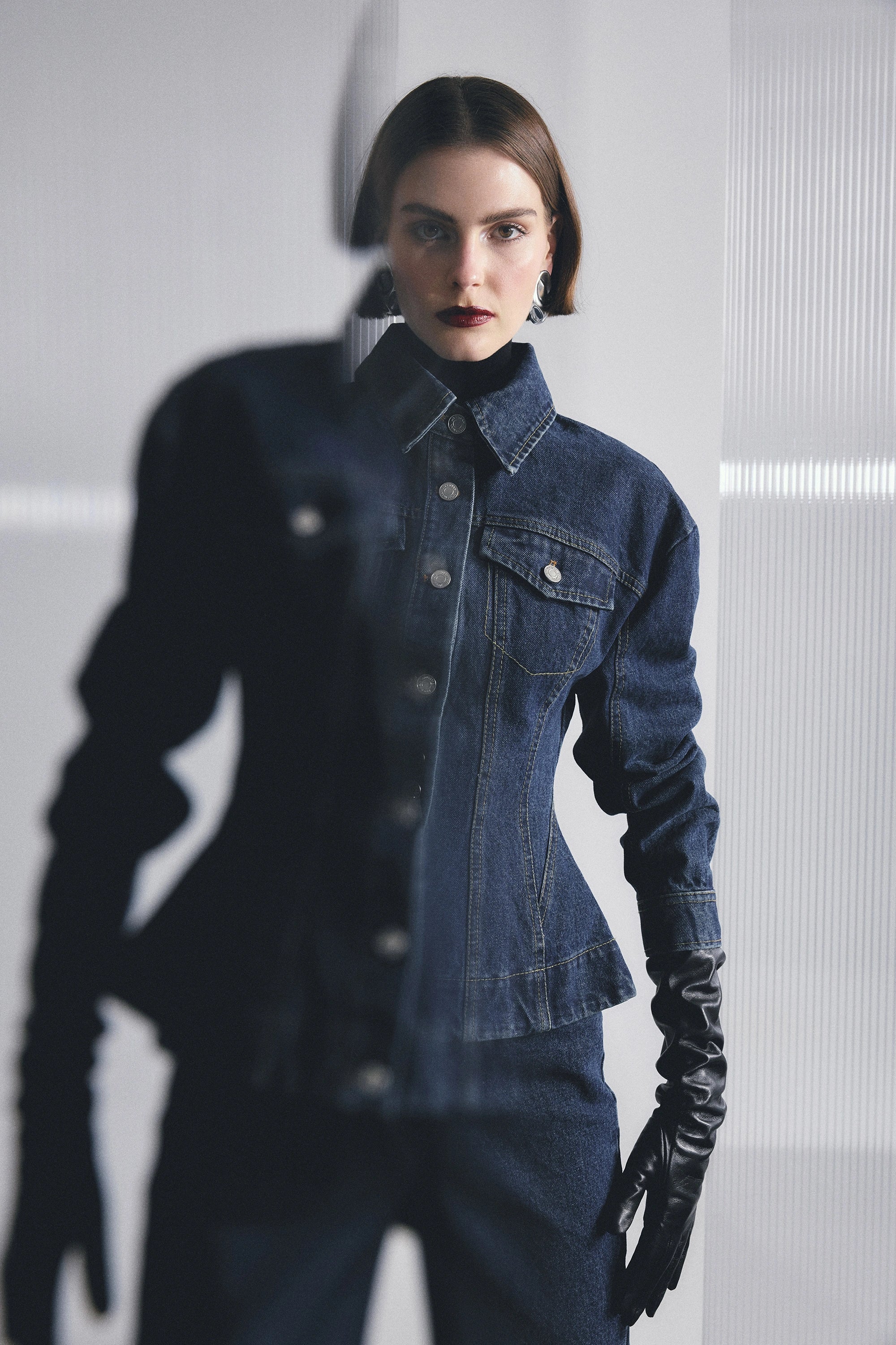 The Overdrive Jacket is a modern take on classic denim tailoring. Crafted in washed indigo denim, it features a fitted waist that accentuates the silhouette, drop shoulders for a relaxed feel, and denim button closures throughout. Designed with faux flap front pockets, this piece blends structure with ease for effortless everyday styling. Pair it with the Overdrive Pant for a refined double denim look.