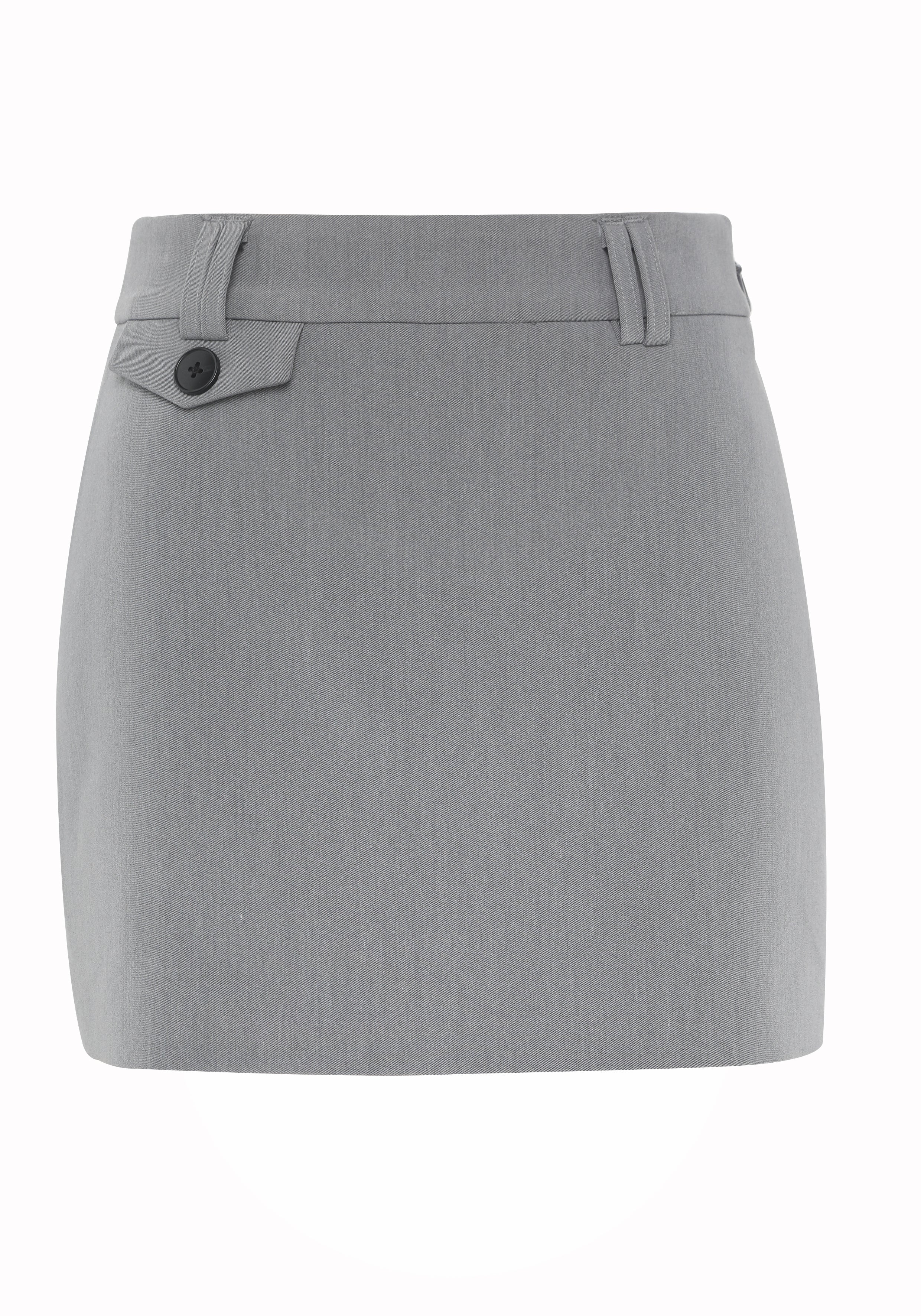 The Boston Mini Skirt in grey blends classic tailoring with a bold edge. Crafted from premium suiting fabric and fully lined for a structured fit, it features double belt loops, a faux coin pocket detail, and an invisible side zip closure. A versatile staple for all seasons, it pairs effortlessly with the Boston Jacket for a refined desk-to-dinner look or a simple knit for effortless weekend style.