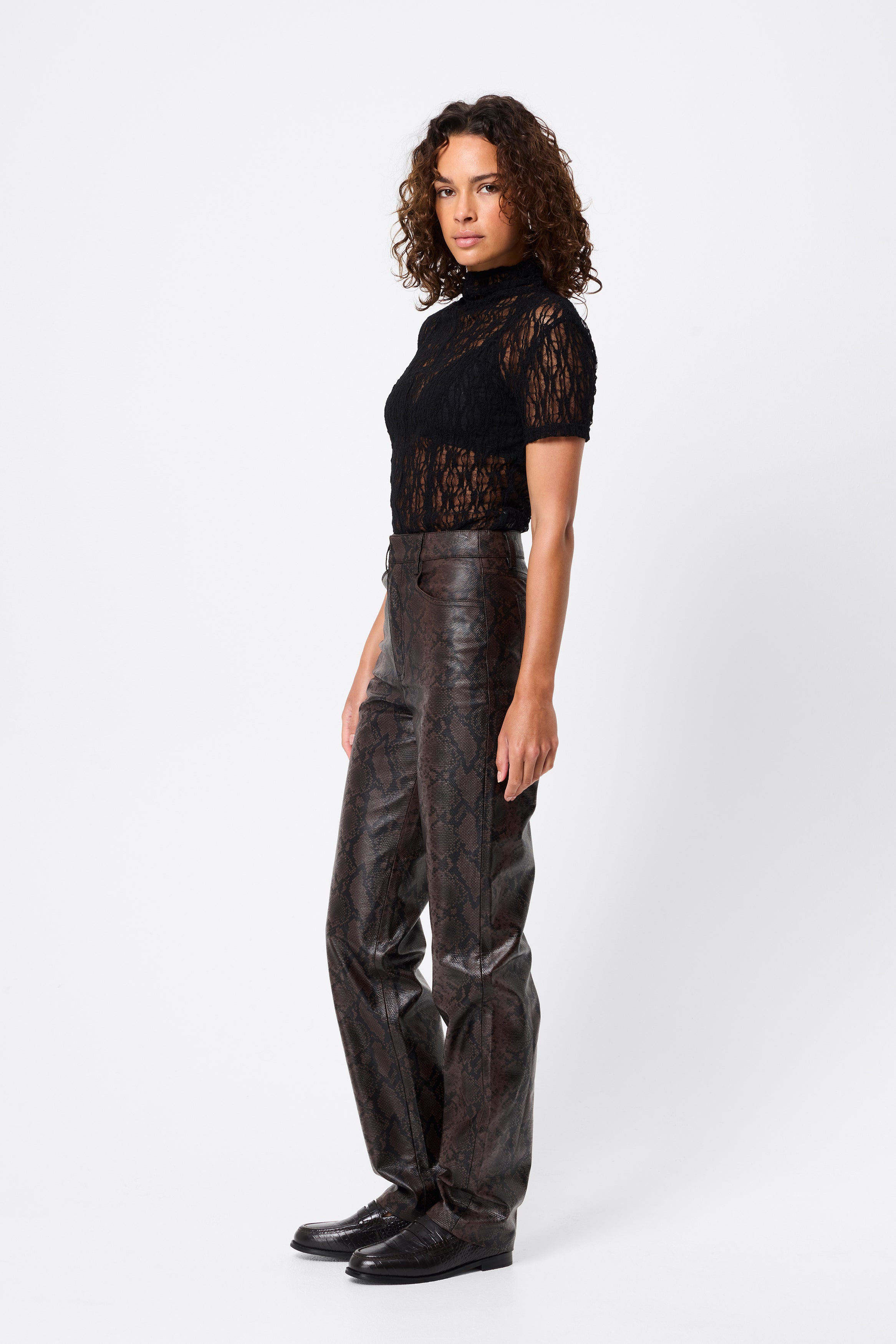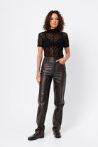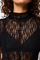 The Close To You Bodysuit in Black brings a refined edge to contemporary dressing. Crafted in a sheer, textural spiderweb lace, it features a grown-on neck and cap sleeves for a sleek, sculptural silhouette. The vertical seaming detail is subtle and adds dimension to the body, while the center back keyhole opening provides a point of difference. The bodysuit has a thong-style back, and crotch press stud closure. While offering sheerness, it layers effortlessly under tailoring or makes a statement worn on its own. A modern essential for after-dark styling with a confident, polished finish.