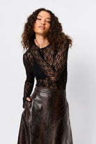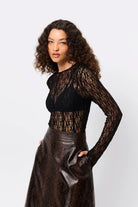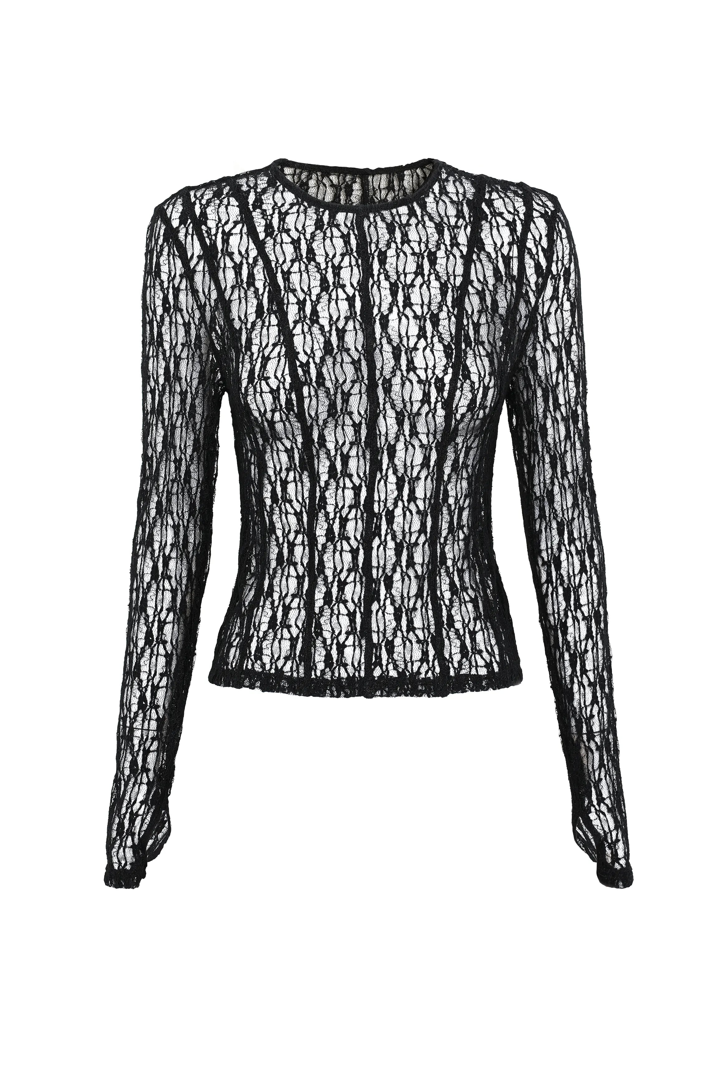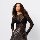 The Close To You Top in Black delivers modern elegance with a subtle edge. Crafted in a sheer, spiderweb-like lace, it features a crew neckline and slim-fitting long sleeves with Mossman’s signature thumbhole to create a clean, elongated line through the body. Designed to skim the silhouette, it features vertical seaming detail throughout the body, balancing softness and strength, and making it a versatile layering piece or a statement worn on its own. Effortless, elevated and endlessly adaptable from day to night.