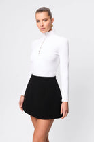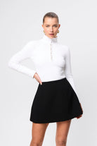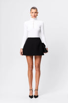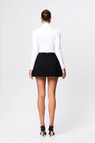 A modern take on classic tailoring, the Columbia Mini Skirt in Black is designed with a sculpted bell silhouette in our luxe fused crepe. The back zip closure ensures a sleek fit, making it an elevated essential for any wardrobe. Style it with a structured blouse for a sophisticated workwear look, or layer it with a fitted knit and tights for cooler days.