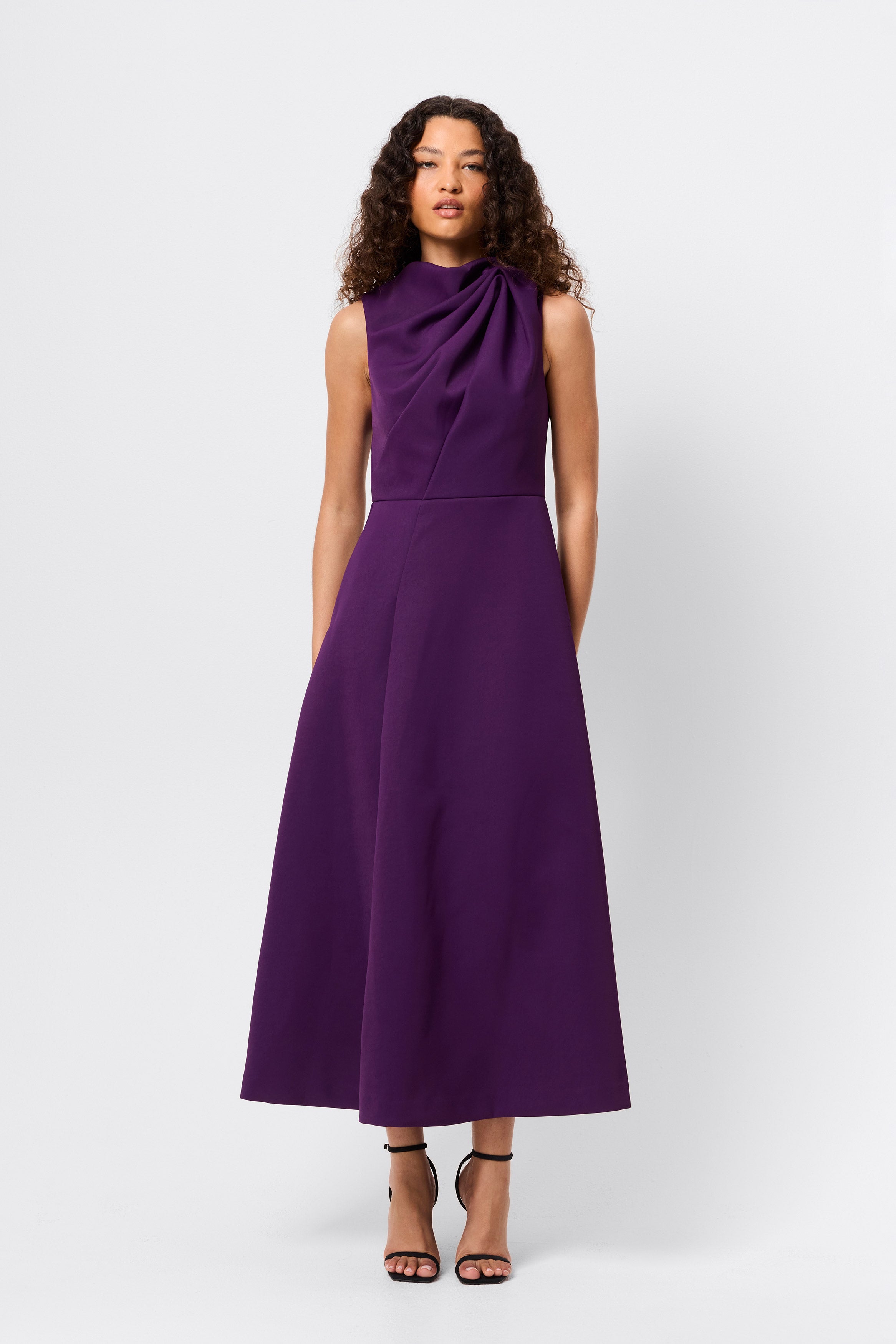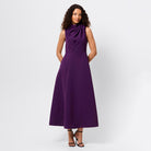 Our Cosmic Maxi Dress in purple is the epitome of timeless elegance. Featuring a flattering A-line design, this dress includes a draped bodice, shoulder tucks and a defined waistline to accentuate the silhouette. Complete the look with minimalist heels for an effortlessly elegant style for your next formal event.