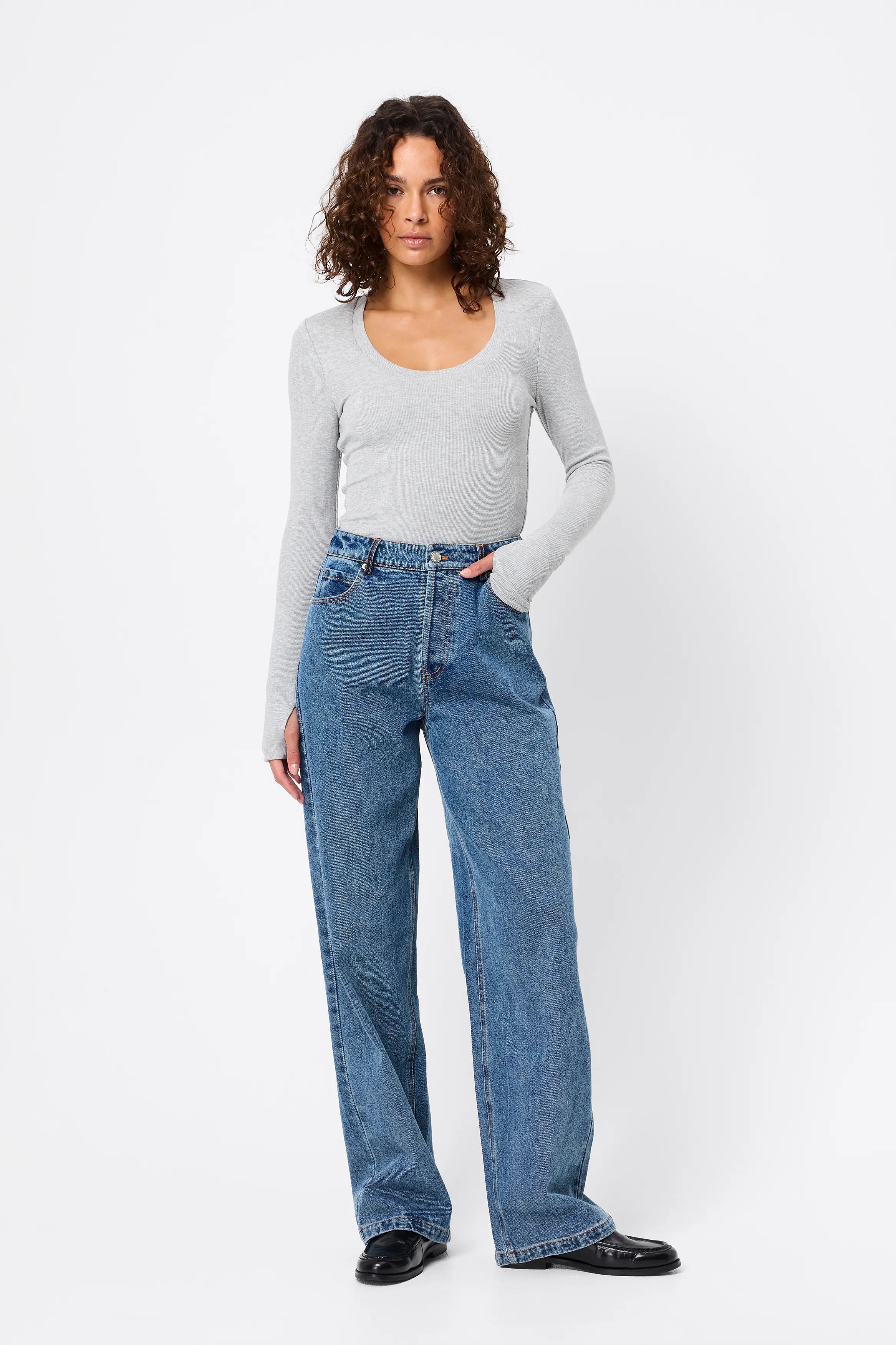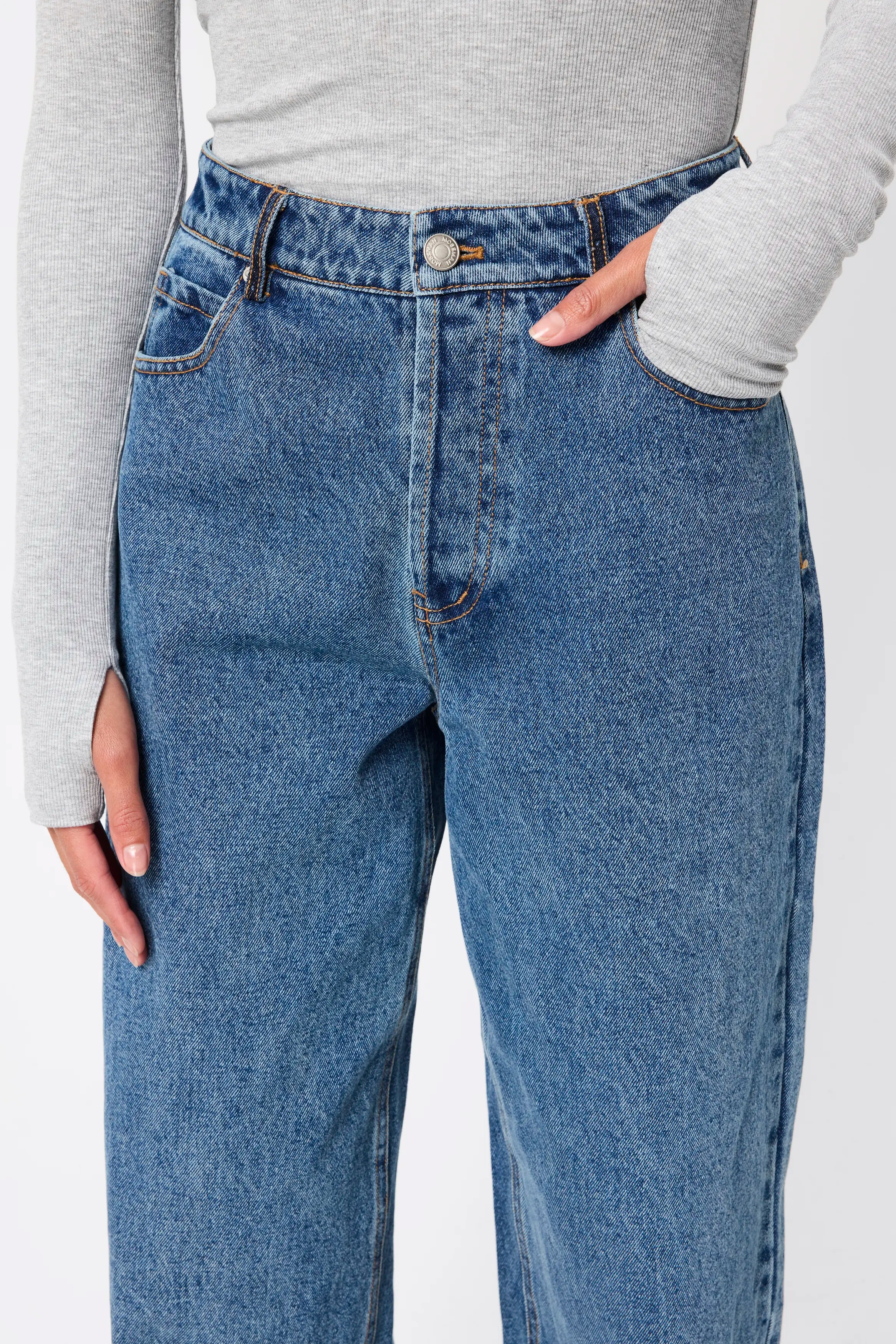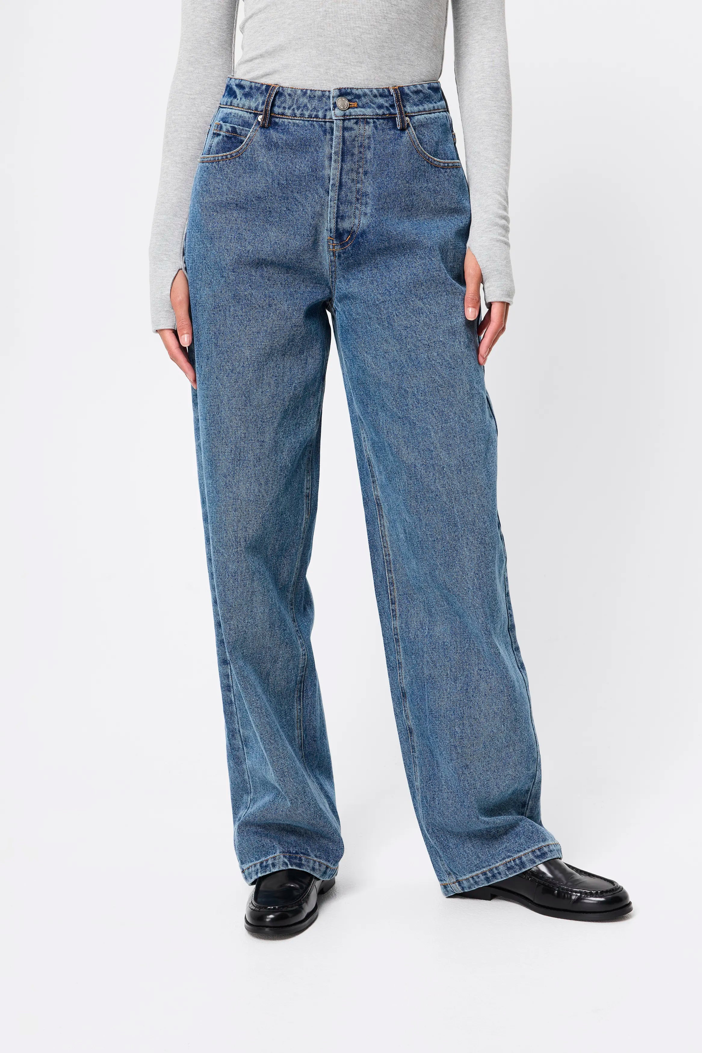 The Frequency Jean is our latest jean in a classic blue wash. With a high-waisted silhouette, classic five-pocket design, and wide-leg fit, these denim jeans will take you through the seasons in style. Pair with your favourite basics for a casual daytime look, or pair it with our Darcy Shirt for a fashion-forward outfit.