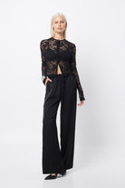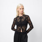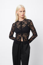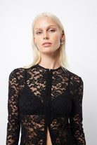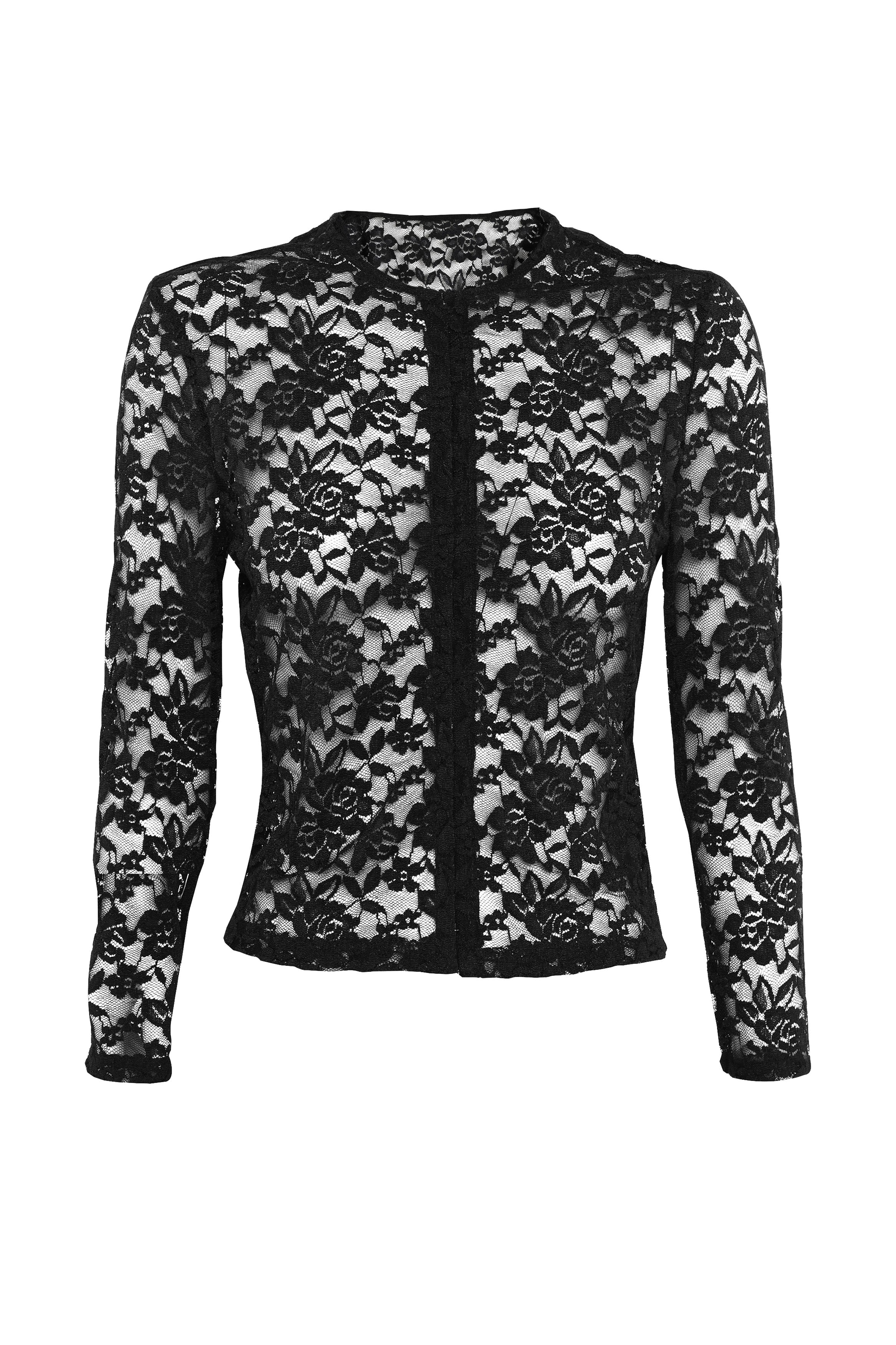 ​​The Indebted Cardigan is a versatile layering piece crafted from luxurious stretch lace. With its hook-and-eye closure and form-fitting silhouette, this cardigan is effortlessly chic. Wear over a sleek tank and denim for weekend dressing, or with a bralette for daring sophistication