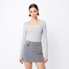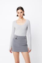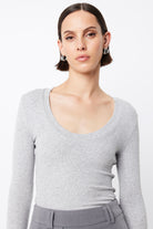 The Lincoln Top in Grey Marle is a timeless addition to your capsule wardrobe. Crafted from a soft, double-layered ribbed jersey, it offers comfort and stretch while keeping you warm. Designed with a flattering scoop neckline, long sleeves, and thumb-hole detailing, this piece is perfect for trans-seasonal styling. Effortlessly versatile, it pairs seamlessly with your wardrobe essentials for a sleek, elevated look.