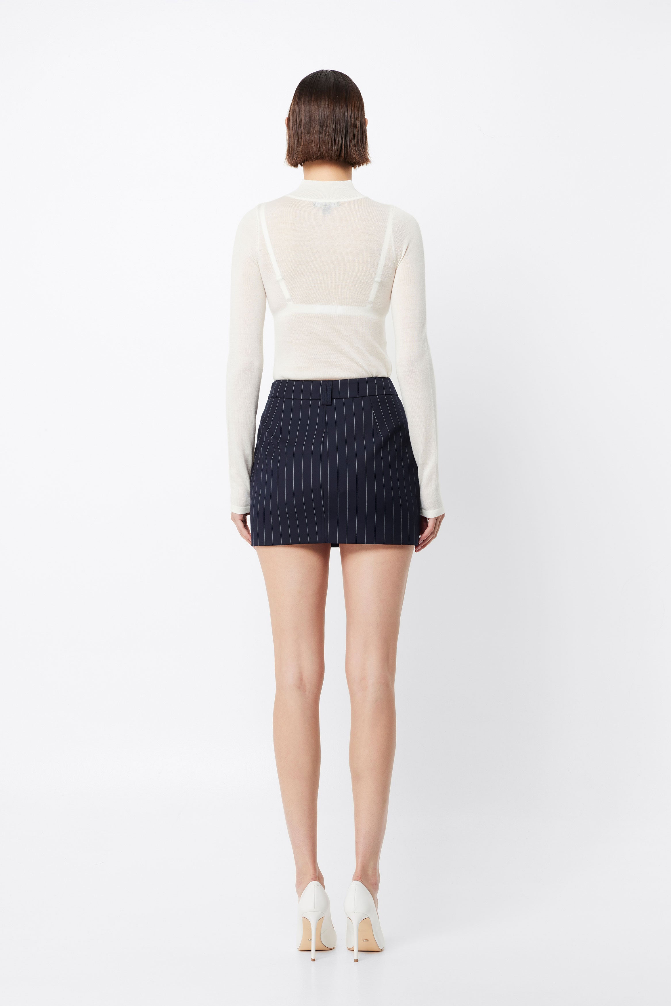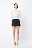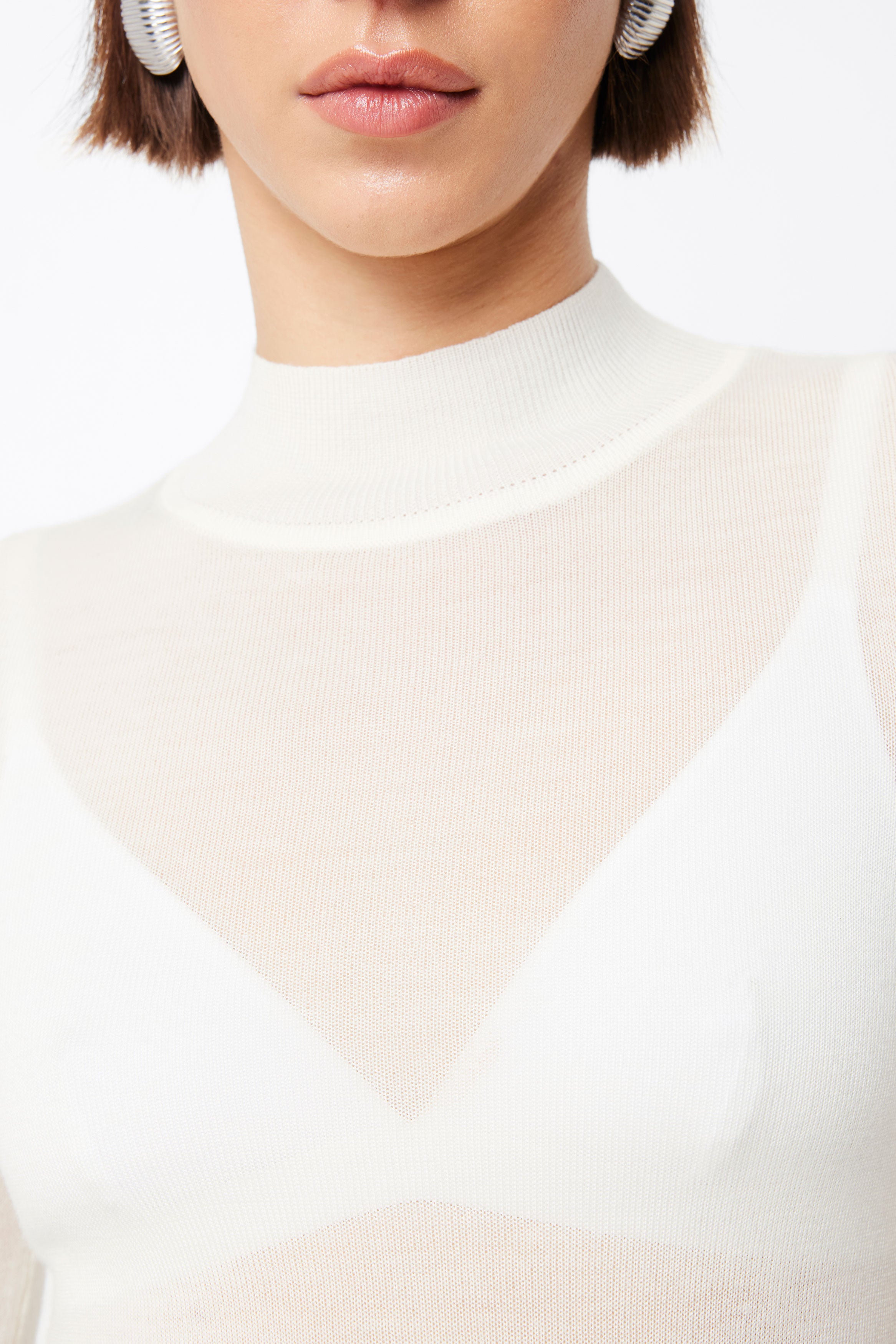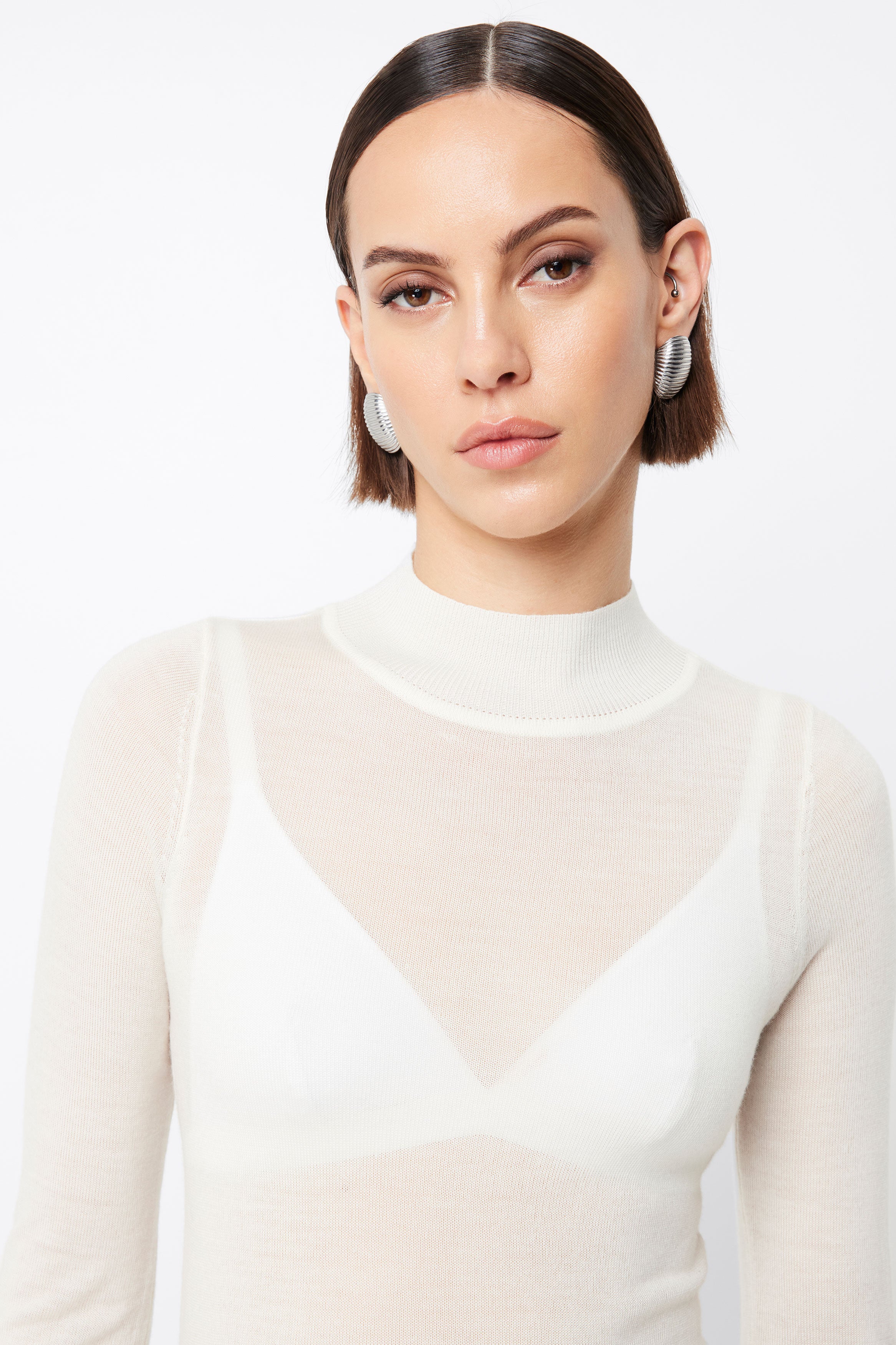 The Maine Turtleneck Top in Off-white is a refined staple for your capsule wardrobe. Crafted from soft 100% Merino wool, this versatile piece offers warmth and effortless style. Accented with a ribbed waistband and a high neckline, it’s perfect for layering or wearing solo. This trans-seasonal essential pairs seamlessly with your wardrobe favourites for a polished yet relaxed look.