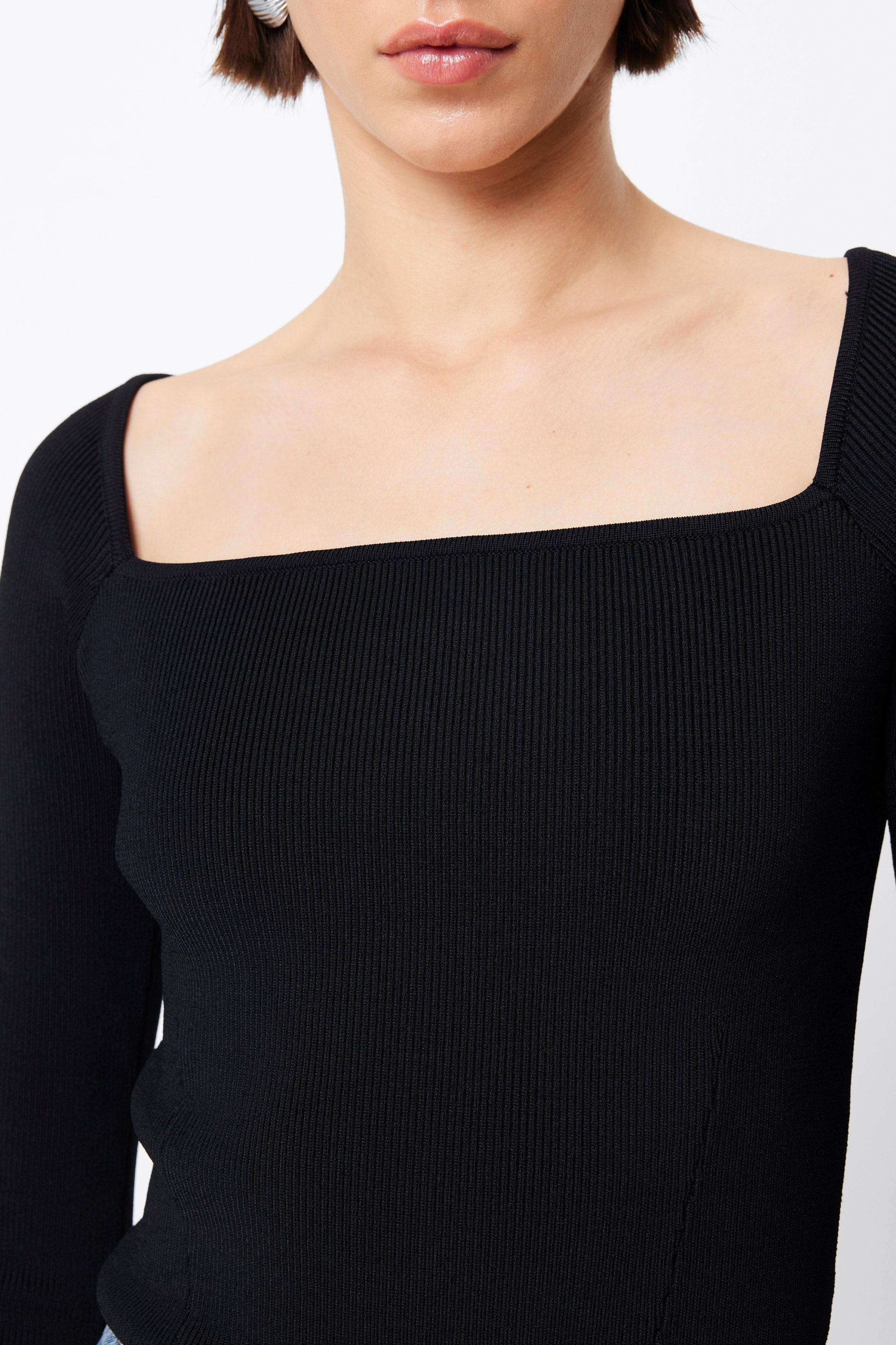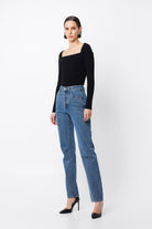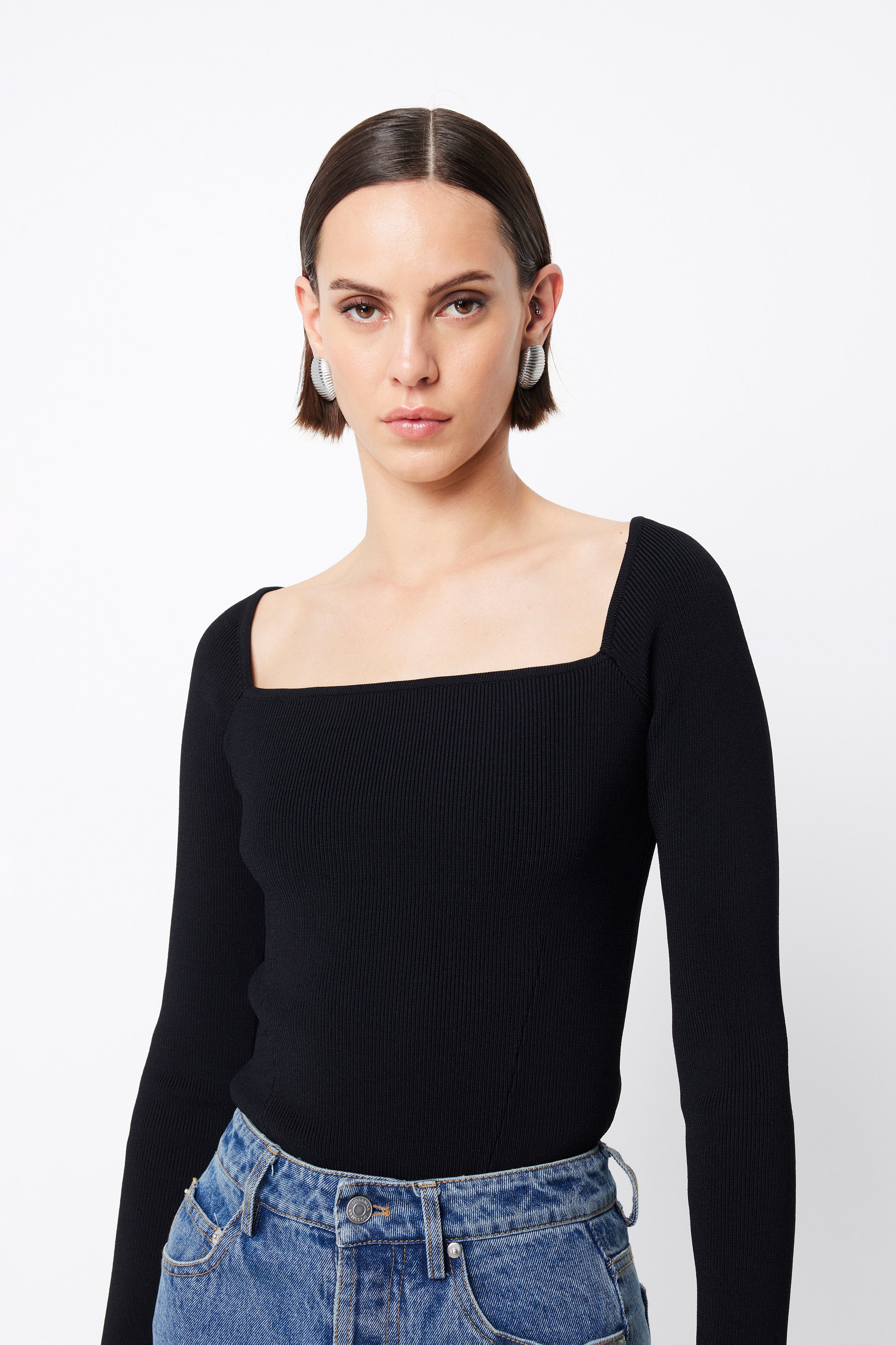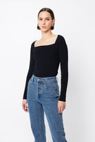 The Manhattan Long Sleeve Top in timeless Black offers a refined approach to everyday styling. Made from high-quality crepe knit fabric, it features a square neckline and long sleeves that enhance its sleek and flattering silhouette. Perfect for cooler days, it seamlessly transitions from laid-back occasions to elevated events.