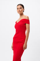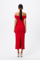 Turn heads in the Modernist Midi Dress in Red — a sculptural silhouette that blends refined simplicity with modern edge. Crafted from premium matte crepe fabrication, it features a waved off-the-shoulder neckline with boning for structure and support. The sleek column fit is fully lined for a flawless finish, while an invisible centre-back zip and back split ensure ease of movement. Sophisticated and striking, it’s an unforgettable choice for any formal event.