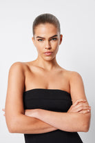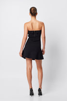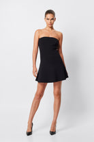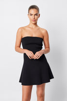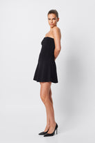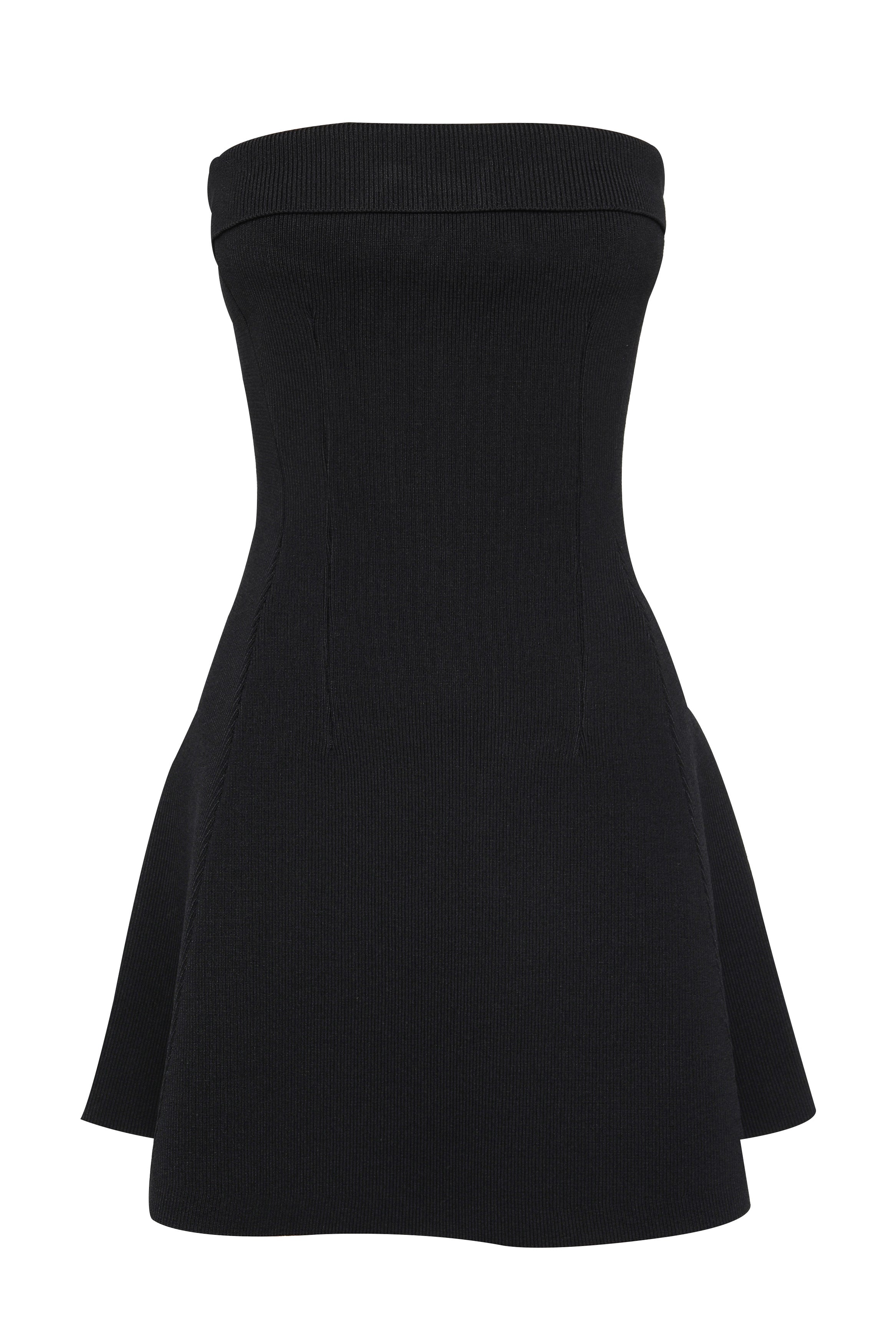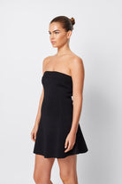 Crafted from a high quality crepe knit fabric, the Monaco Mini Dress in black has a ribbed fold-over detail at the bust. This dress is fitted through the torso with an A-line skirt. Perfect for day or night events, pair this dress with statement accessories for an effortless look. Mossman recommends you store this dress folded.