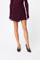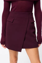 With its sculptural design and modern edge, the On My Way Mini Skirt in cherry lacquer is the update your wardrobe needs. It showcases a tailored A-line silhouette and asymmetrical mock-wrap front. Wear with the Brooklyn Top for a simple yet sophisticated look.