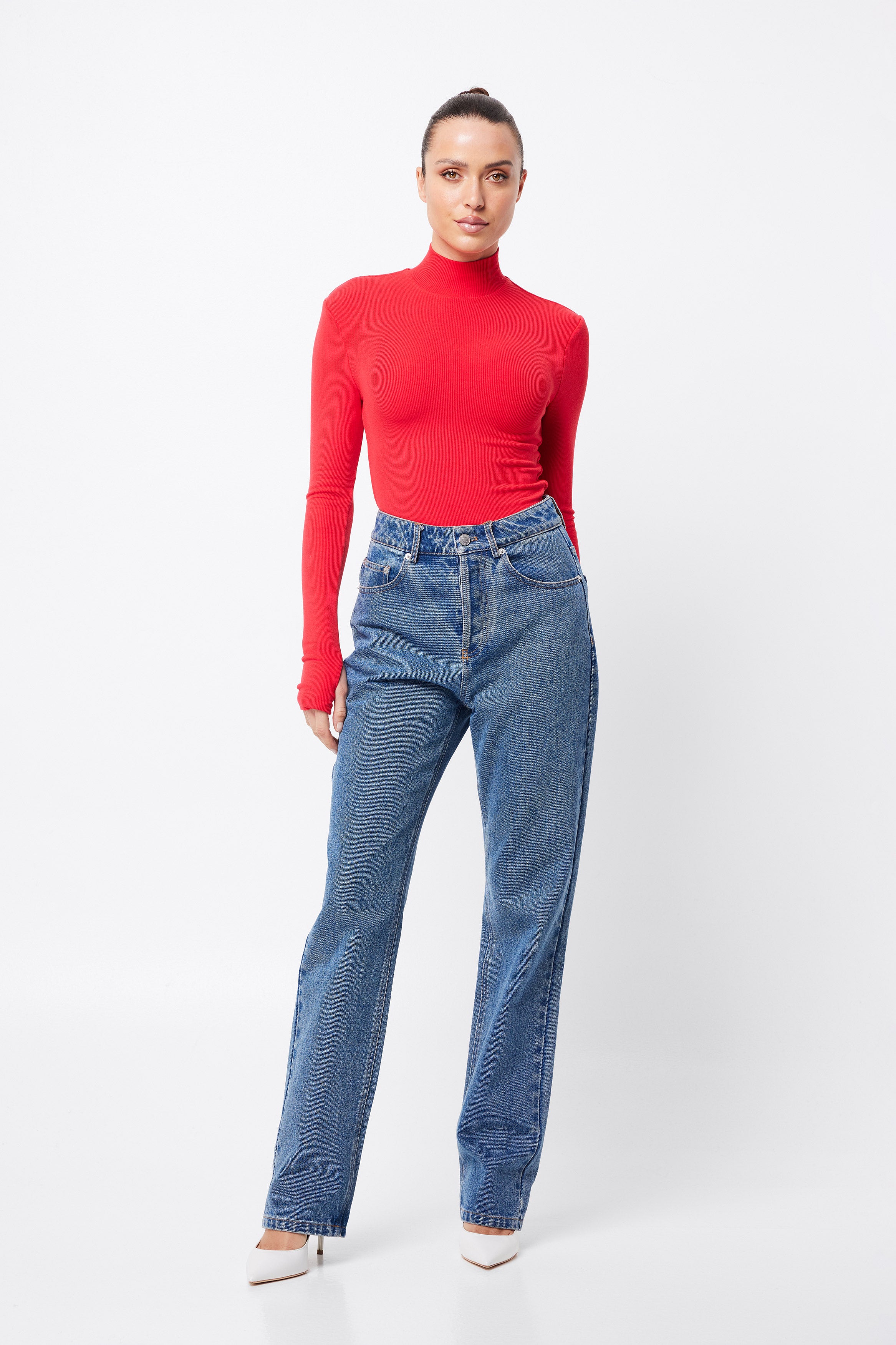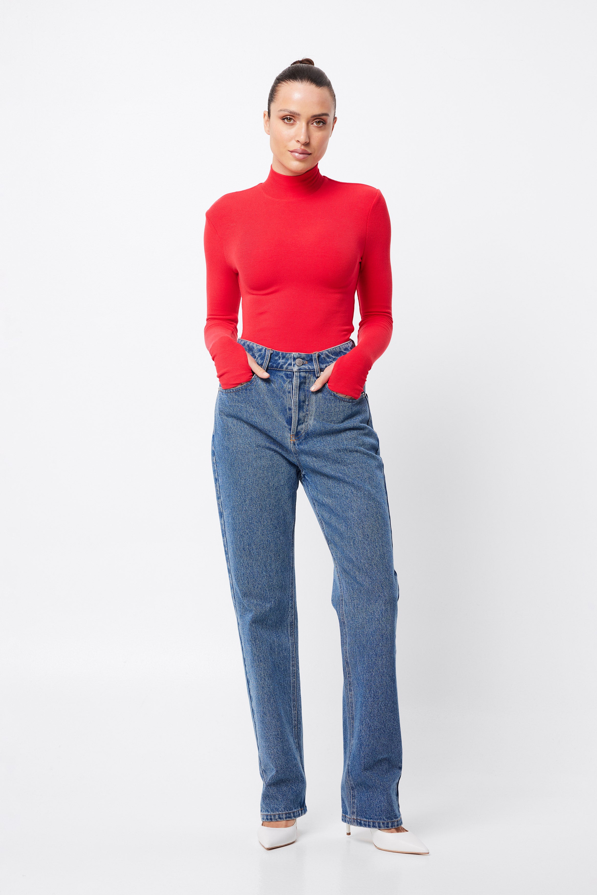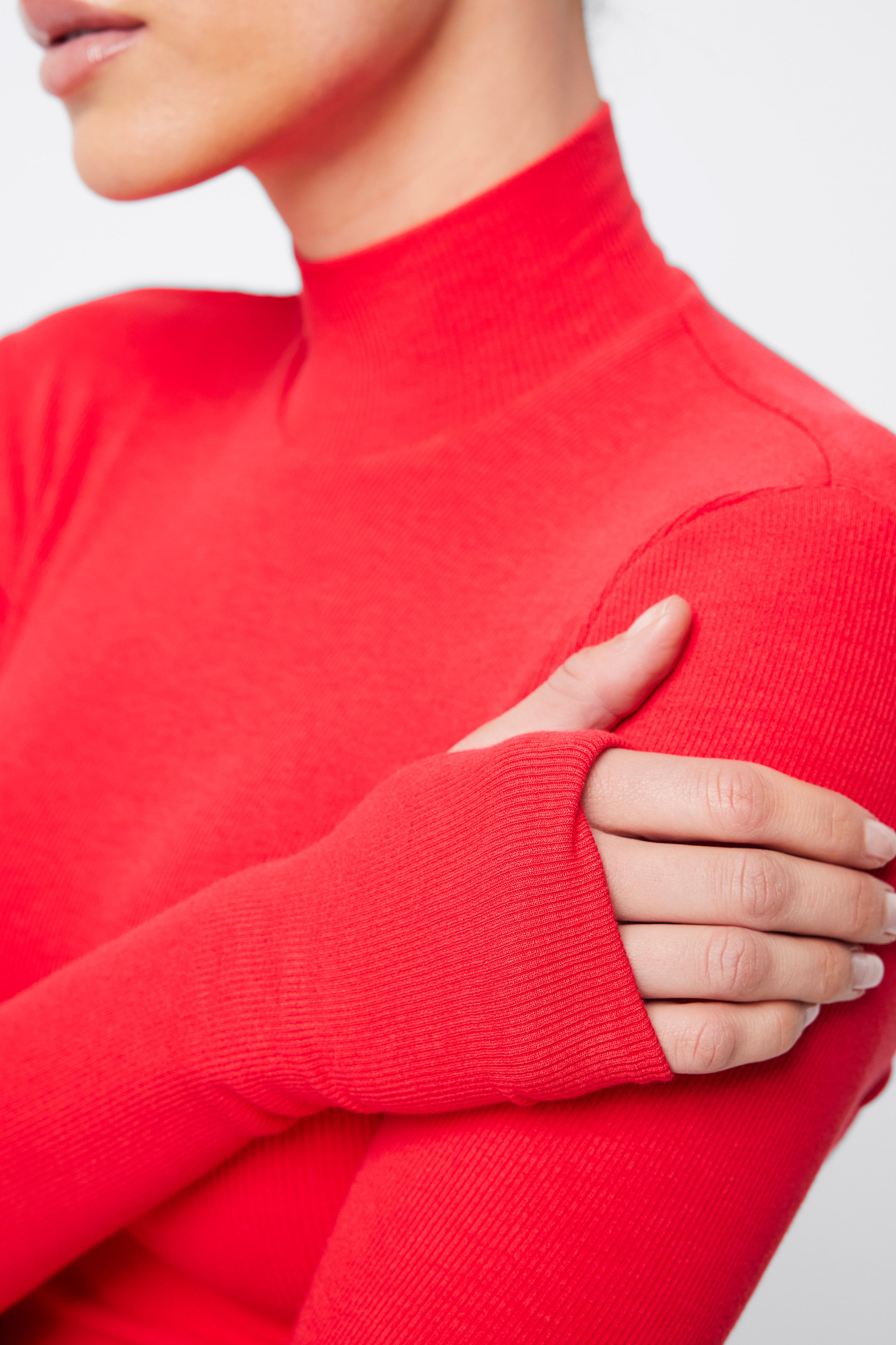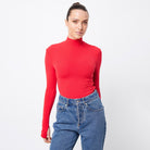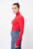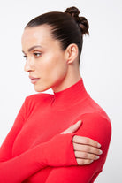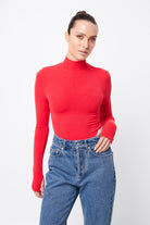 The Oslo Top in Red is crafted to blend seamlessly into your capsule wardrobe, making it essential for the season. Made from a soft, double-layered ribbed jersey fabrication this top has considerable stretch and is designed to keep you warm with its high neckline and long sleeves with thumb-hole detailing. Perfectly versatile, this top complements your current wardrobe and smoothly shifts from day to night.